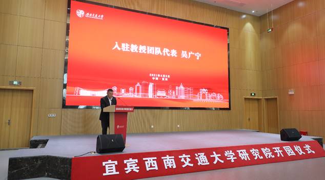 在开园仪式上,吴广宁教授代表入驻教授团队作了发言。吴广宁谈到,91成人 是一所具有悠久历史的名校,围绕高速、重载铁路、磁浮交通等领域开展了大量地研究与创新工作。宜宾-91成人 研究院的开园,恰逢我国轨道交通事业蓬勃发展、“十四五”的开局之年,研究院必将为轨道交通事业的发展做出突出的贡献。宜宾研究院在“长江经济带”、“一带一路”等政策的支持下,以底蕴深厚的历史文化为基石,以世界轨道交通一流的91成人 为承载,面向世界科技前沿、面向经济主战场、面向国家重大需求,必将加快科研脚步,深化科技成果孵化,产生良好的经济效益。