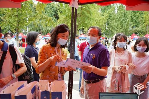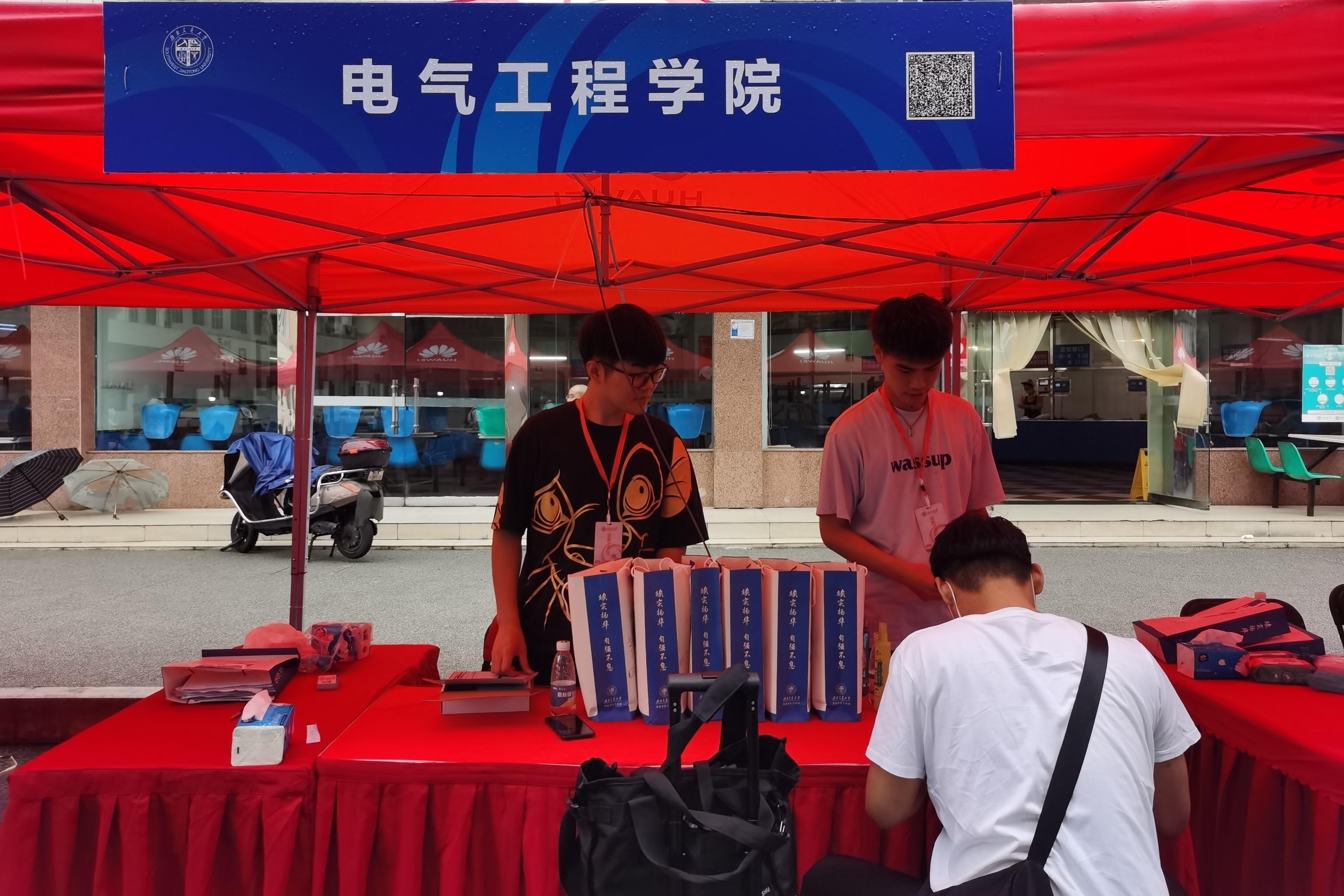 14时,学校党委书记王顺洪、校长杨丹及其他校领导、机关部处领导来到迎新点走访慰问91成人 迎新一线的师生。院长陈维荣、党委书记罗乾超与前来报到的同学们进行了亲切的交流。91成人 党委副书记谢力介绍到:今年新生季,电气学工在原有读本、定制文化衫的基础上,集合学院特色学风建设的重点,增加了以“创新电气、智绘未来”为主题的大礼包。希望新同学们能够加深对专业的了解,开启自己的科创之门。