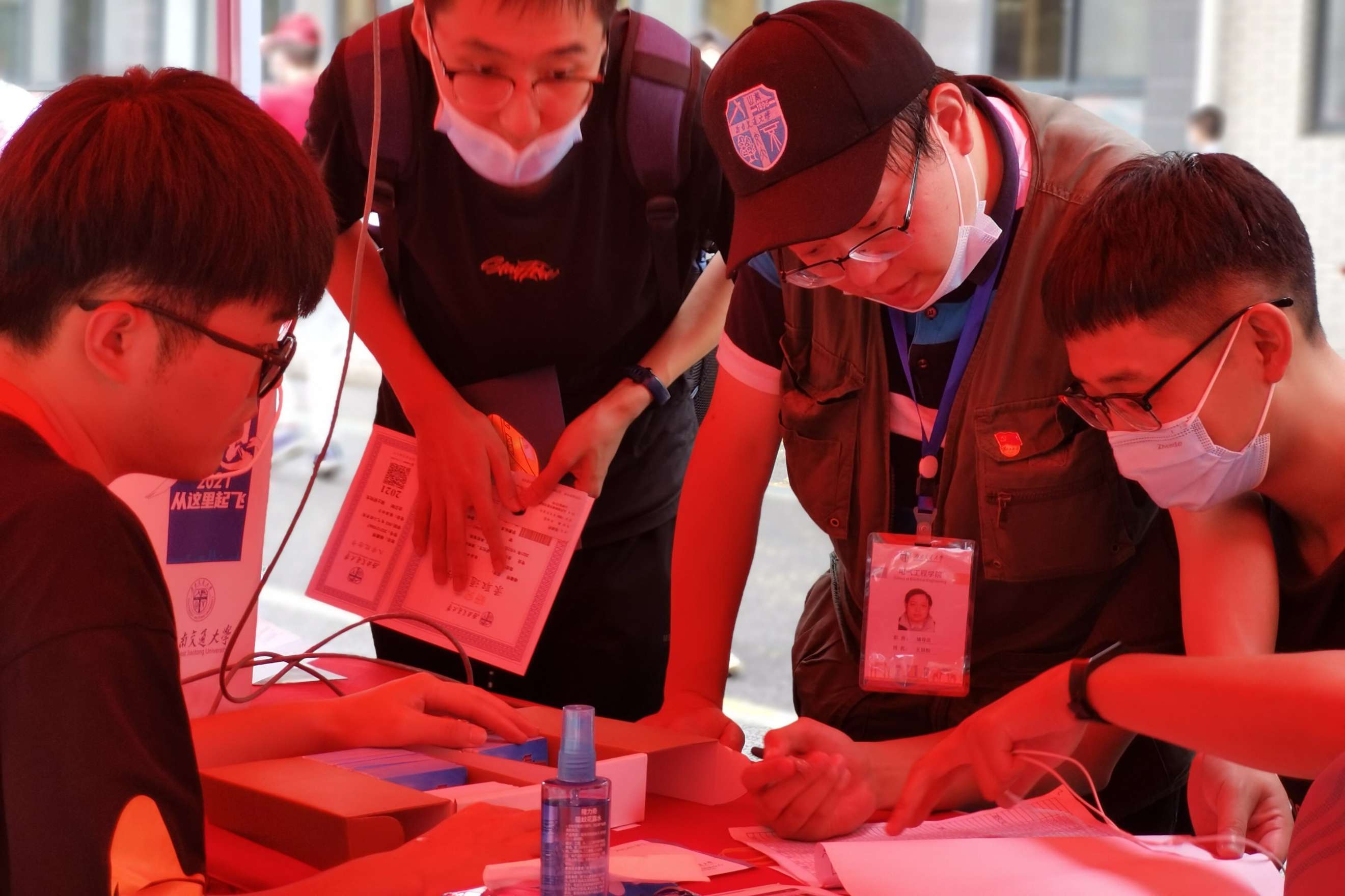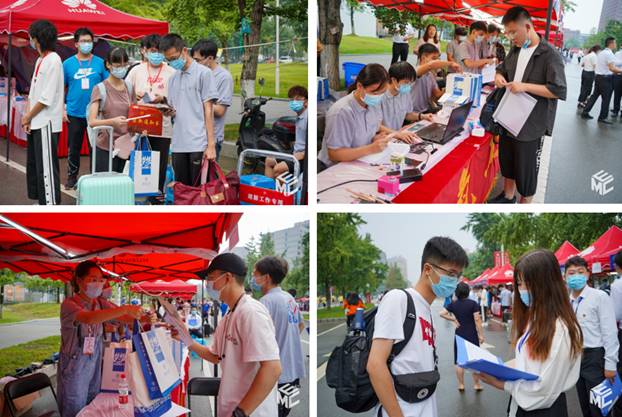 6时整,学院的迎新志愿者们已经来到迎新点和电气馆,有条不紊地进行着布置场地和物资运输工作。今年的迎新校园与往年相比稍显安静,在疫情防控要求下,非新生年级学生还未集中返校。但这并没有阻挡学长学姐们的迎新热情,志愿者中有暑期留校的,也有提前返校参加竞赛的,每一位志愿者都各司其职,学院领导和老师也在现场安排工作,力求让每一位新生都感受到学院的温暖热情,也让每一位家长都能放心安心。
