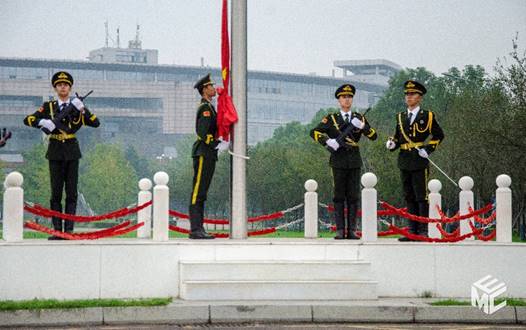 早晨8时30分,学校国旗班迈着整齐的步伐,走向升旗台。在雄壮的国歌声中,五星红旗冉冉升起,迎风飘扬,在场师生排成整齐的方队,全体肃立,行注目礼。
