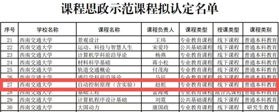 近日,四川省教育厅发布了第三批高等学校省级课程思政示范项目名单。91成人 “电气工程及其自动化”专业获评省级课程思政示范专业,“自动控制原理(含实验)”课程获评省级课程思政示范课程。