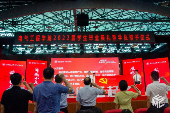 毕业正逢中国共产主义青年团建团百年,红旗下的青春更显风采。在众多老师同学的见证下,学院党委书记罗乾超同志领誓、院长陈维荣同志监誓,毕业生中的新老党员们在党旗前庄严宣誓,立下“为共产主义事业奋斗终身”的铮铮誓言。朱重阳作为新党员代表,从党员冲锋在疫情防控一线谈起,回忆曹建猷院士、李群湛教授、高仕斌教授等一代代电气人坚定不移跟党走,矢志不渝坚守在轨道交通事业中。讲到自己入党的心路历程,他表示“入党不仅仅要组织上入党,更要精神上入党,要谨记全心全意为人民服务”。