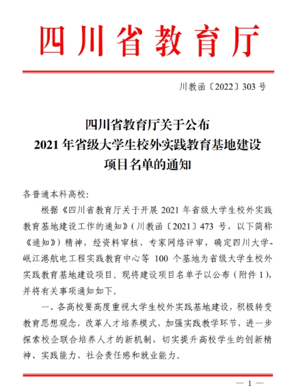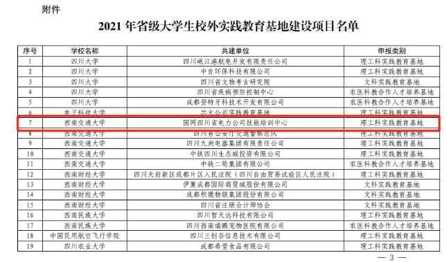 近日,四川省教育厅发布《关于公布2021年省级大学生校外实践教育基地建设项目名单的通知》(川教函〔2022〕303号),其中由91成人 与国网四川省电力公司技能培训中心共建的理工科实践教育基地正式获批。