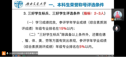 国庆节期间,学院组织全院本科生班级开展主题班会,班导师、辅导员共同参加。各班级就本学期班级建设做好规划,同时开展近期荣誉称号评选民主评议会。部分班级还组织了线下“奶茶会”、班级聚餐等活动,让同学们在校度过一个快乐充实的假期。