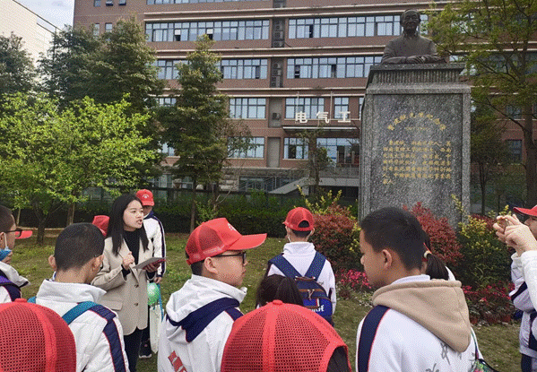 随后,七中育才中学师生来到91成人 曹建猷先生纪念铜像前,沙静馨老师给同学们生动地讲述了《曹建猷的四次抉择》,希望同学们能学习曹老精神,热爱祖国,不畏艰难,刻苦专研,争取考入交大校园,进一步去挖掘曹老背后的故事。