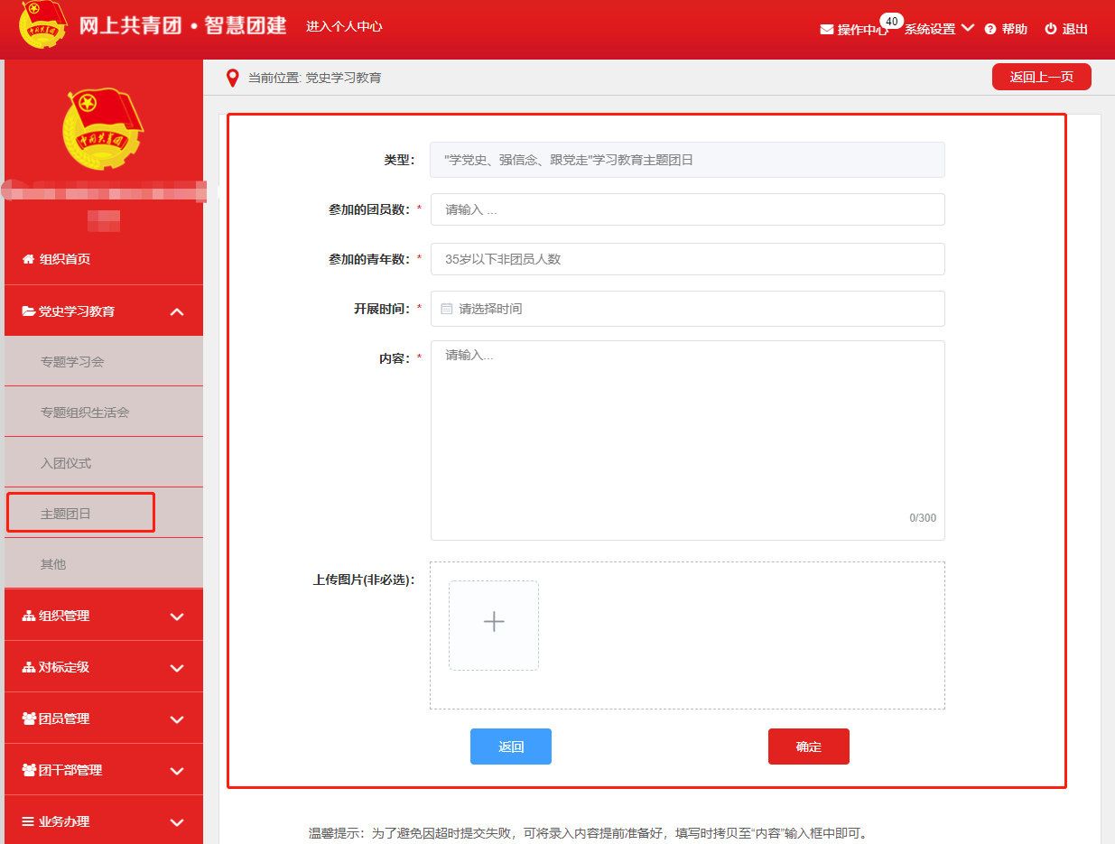 主题团日录入界面