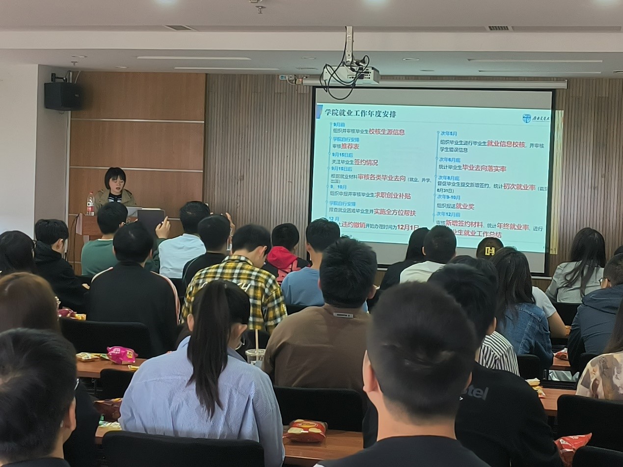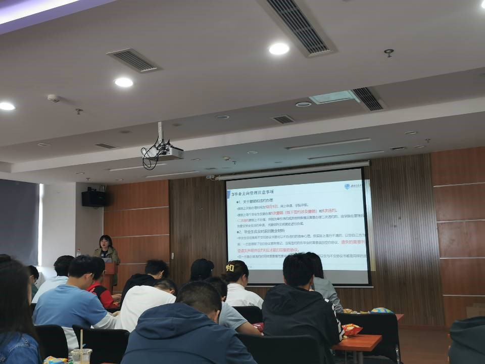 会议开始,樊芝菱老师首先对本科毕业生就业工作的年度安排进行了介绍,同学们对毕业生就业工作流程有了较为清晰的认识。