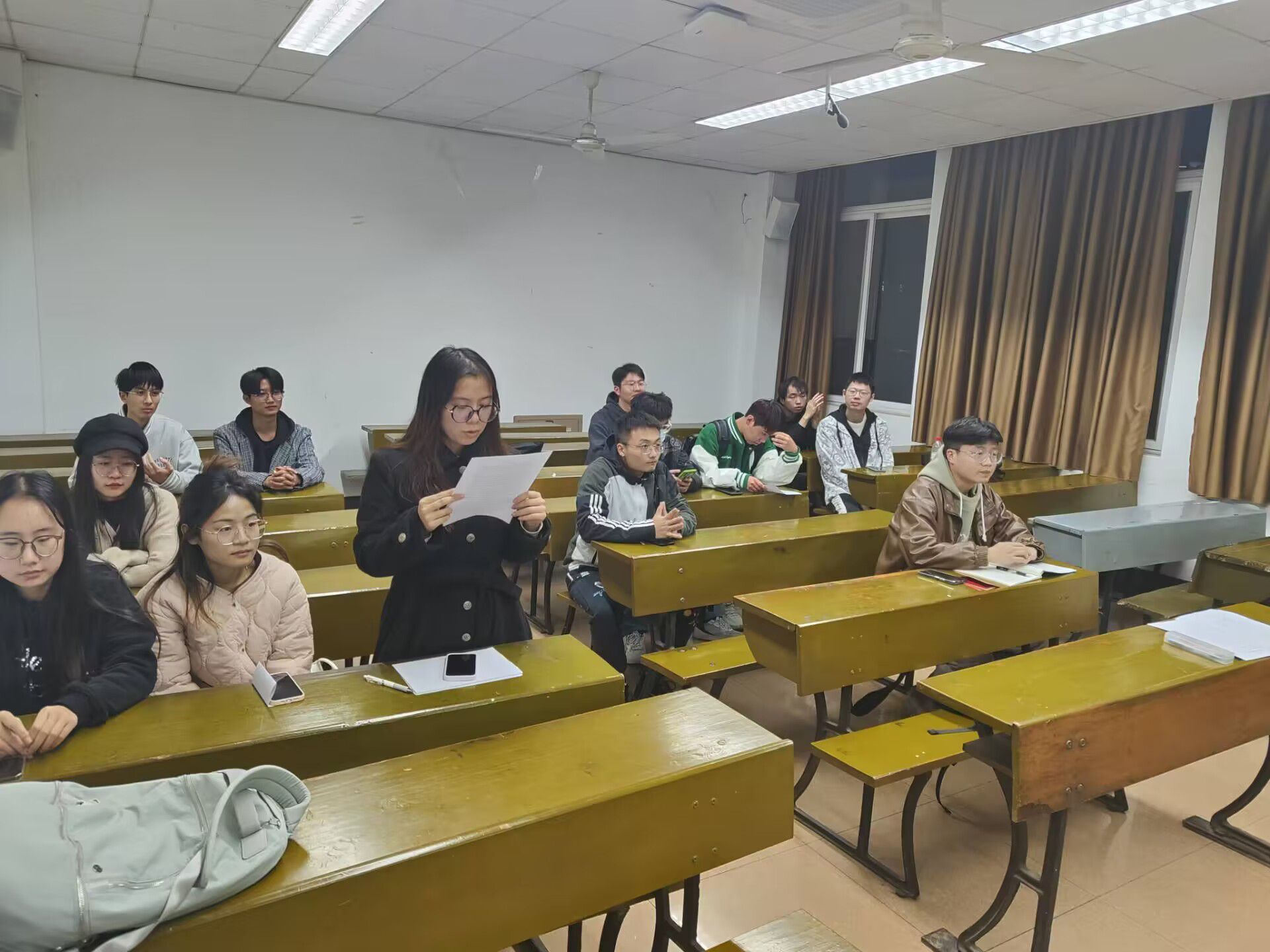 党的二十大报告强调“青年强,则国家强”,对广大青年提出了“立志做有理想、敢担当、能吃苦、肯奋斗的新时代好青年”的重要要求。为深入推进党的理论学习,加强党员和入党积极分子对党的认识,坚定理想信念,感受革命精神,2023年11月30日,91成人 硕士2023-11班党支部于九里校区J4320开展马克思主义理论学习小组集中学习及读书分享会。本次活动由党支书黄佳主持,支部党员及班级入党积极分子参加。