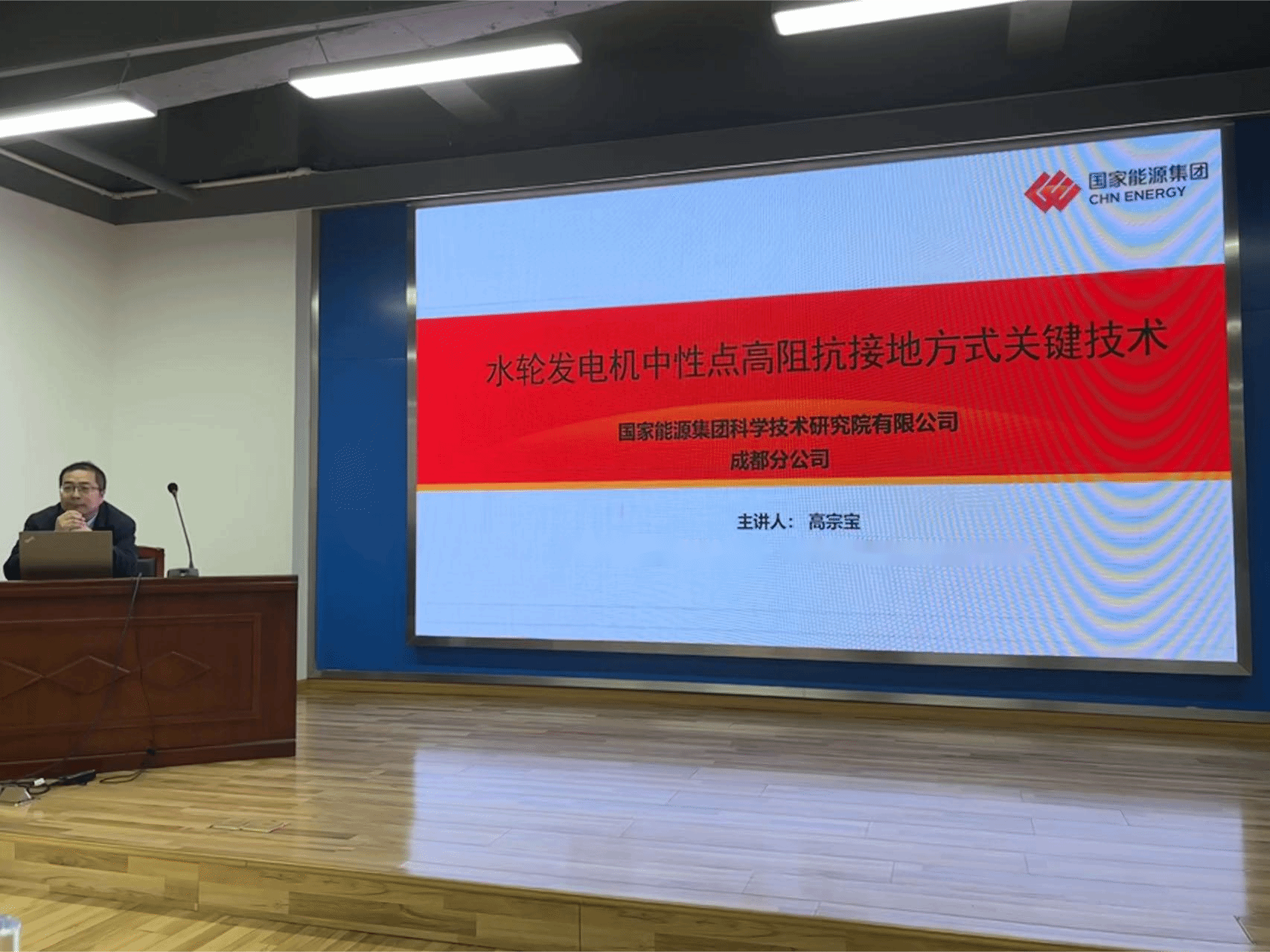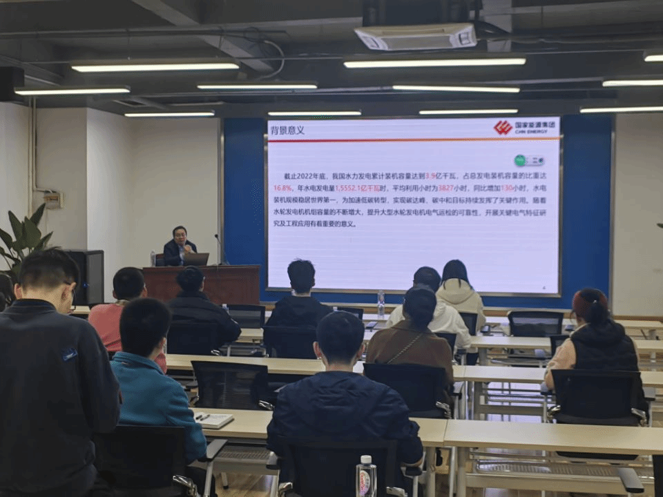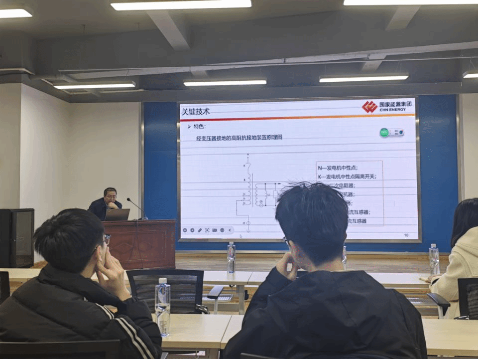 首先,高宗宝主任作题为《水轮发电机中性点高阻抗接地方式关键技术》的学术交流,结合团队在火电厂及水电站的发电机中性点接地方式选择不当的问题分析,以此为博士研究生介绍了关键设备理论研究、参数设计及实验测试的整个流程。高主任向大家介绍了项目的发展历程,并同大家分享:装备设计原理看起来很简单,但在实践过程中,却经历了大量的复杂计算才最终解决问题。