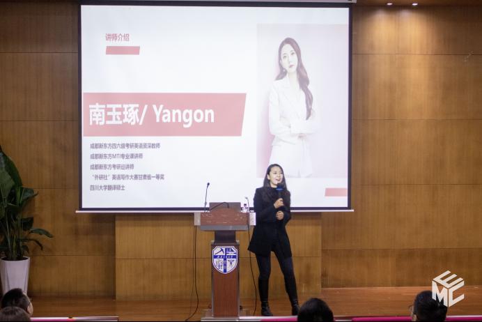 培训会开始,南玉琢依据自身丰富的教学和备考指导经验,向同学们介绍了为何要参加四六级考试以及四级考试的成绩构成和考试流程。随后,她就如何应对四级考试为同学们进行了全面的分析。