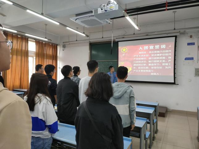在全班同学共唱完国歌之后,成林同学就向大家介绍了什么是中国共产党并简述了建党百年的历史。随后他让同学们结合自身实际谈谈对面全面建成小康社会,脱贫攻坚的看法。同学们积极思考,主动回答,用新时代青年的眼光来解读自己眼中的国家大计。在此之后,全班同学共同了解和学习了中国的脱贫背景、脱贫目标以及我国在脱贫方面仍要做出哪些努力,对我国的脱贫事业有了更为深入的认识。最后,他向大家介绍了我国的四个全面、四个意识、四个自信和两个维护带领同学们重温入团誓词,并国庆假期为切入,带同学们畅谈青年如何向党组织靠拢,如何看待我国我党在以后发展中可能遇到的困难。