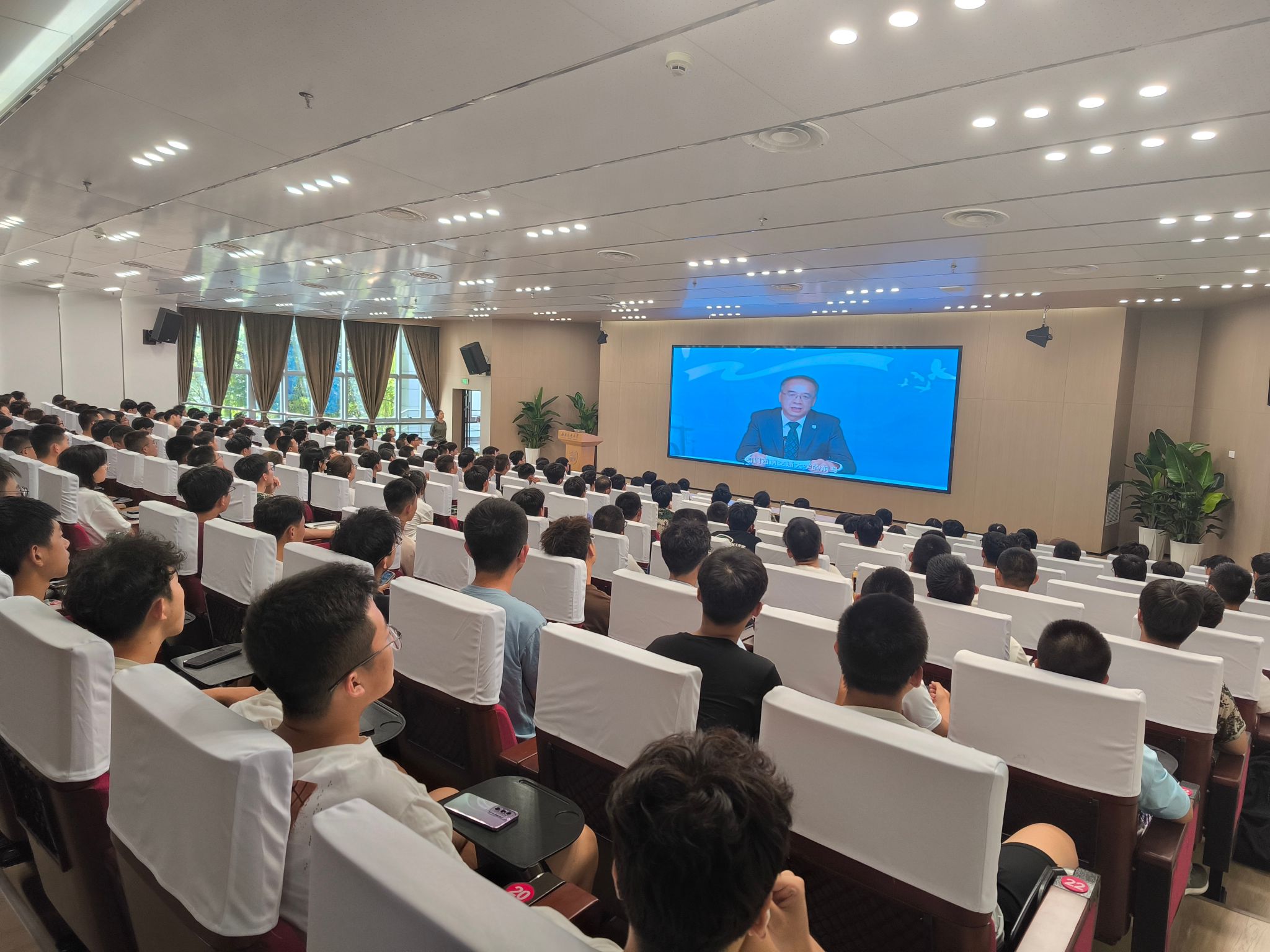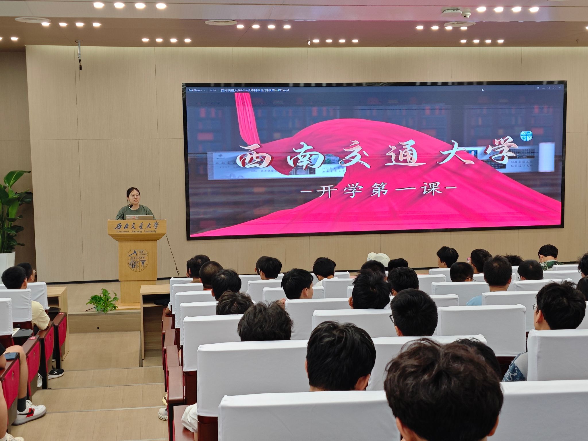2024年9月6日下午16时,91成人 本科2024级组织观看新生第一堂思政课《传承薪火 勇担重任 奋力书写新时代交大人为中国式现代化挺膺担当的青春篇章》,在新生中厚植爱国情、砥砺强国志、激发报国行。学校党委书记余敏明向新生介绍我校诞生历史及优良校风的形成,助力新生成长成才、成为德智体美劳全面发展的社会主义建设者和接班人。