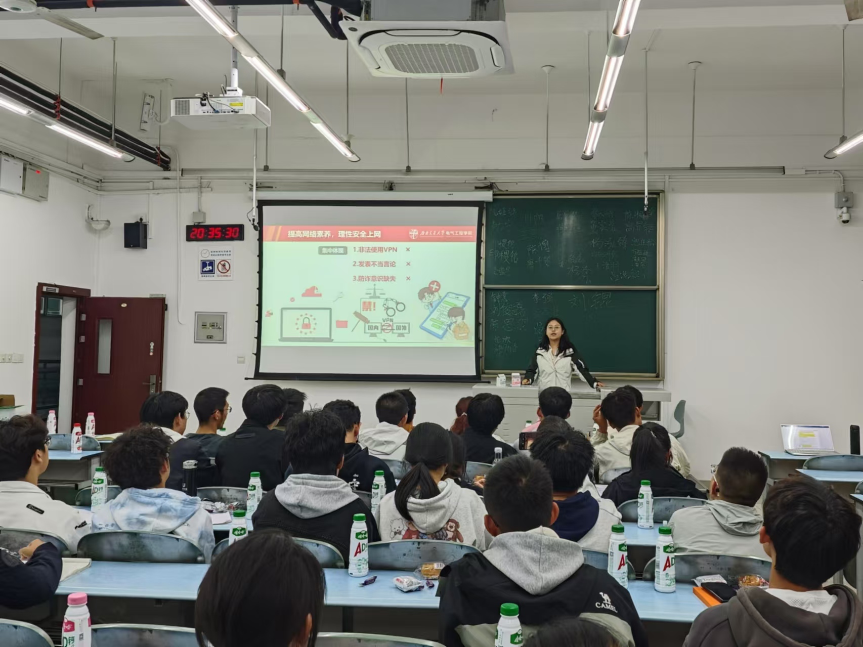 赵娜老师着重强调了提升网络素养与防范电信诈骗的重要性。赵娜老师表示,网络空间已然成为同学们学习生活的重要环境,网络生态的状况直接影响着大学生的成长发展。各位班长、团支书要起到榜样引领作用,坚决抵制非法软件、拒绝发表不当言论,应当明辨是非,始终传播正能量。此外,班长、团支书要持续提高警惕,防范电信网络诈骗,在班级内多提醒、多宣传,增强同学们的防诈意识。