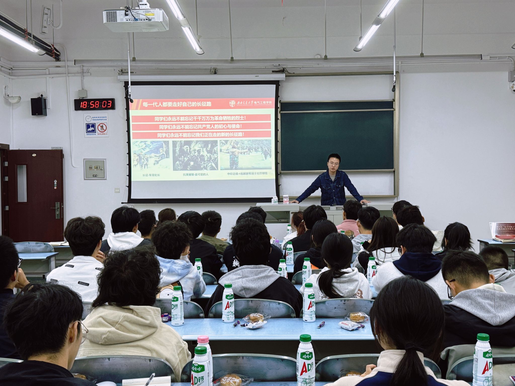 为引导学生坚定理想信念,艾效天老师以“每一代人都要走好自己的长征路”为题,勉励全体班长、团支书不忘来时路,奋进新征程。艾效天老师介绍了长征精神的基本内涵,讲述了红军的长征故事,引导各位班长和团支书牢记初心和使命,为国家富强、民族复兴贡献青春力量。