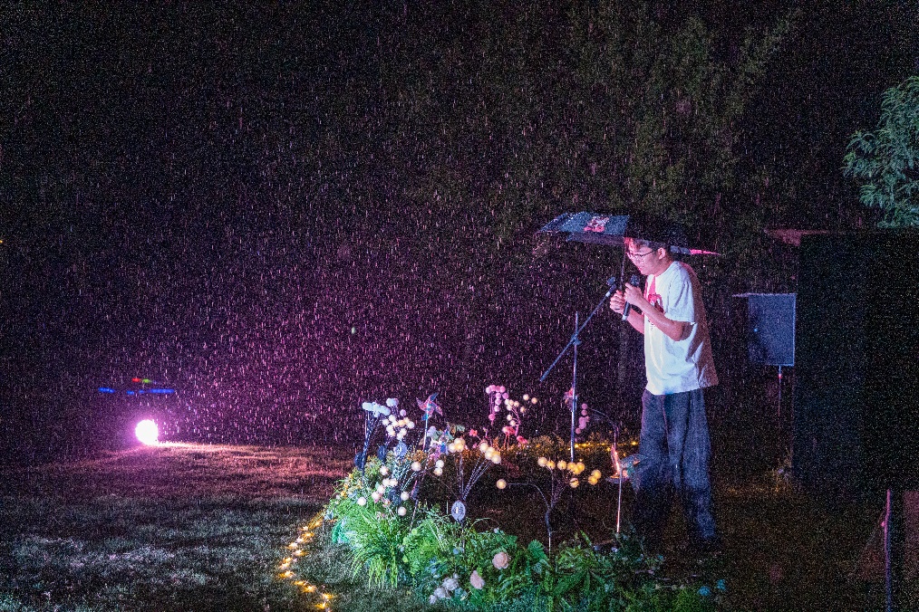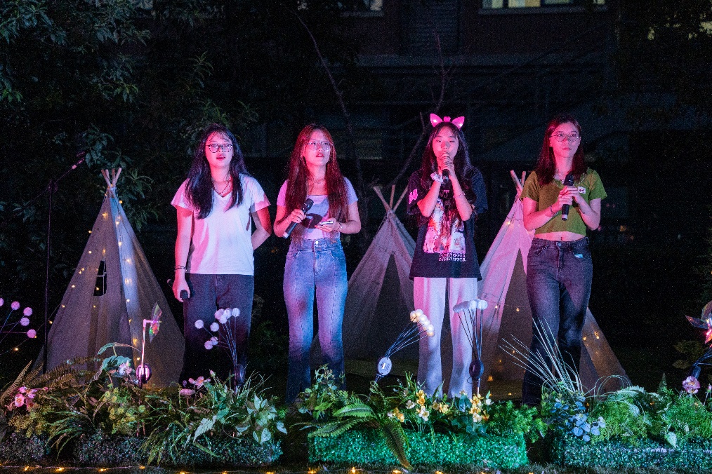 随着最后一首《不说再见》的音乐响起,天空下起了小雨,现场的气氛变得既温情又略带一丝不舍。深情的旋律和触动人心的歌词,恰如其分地捕捉了毕业生们即将各奔东西、却又不愿真正告别的复杂情感。灯光与雨幕相映成趣,为这场毕业晚会增添了几分梦幻与浪漫。