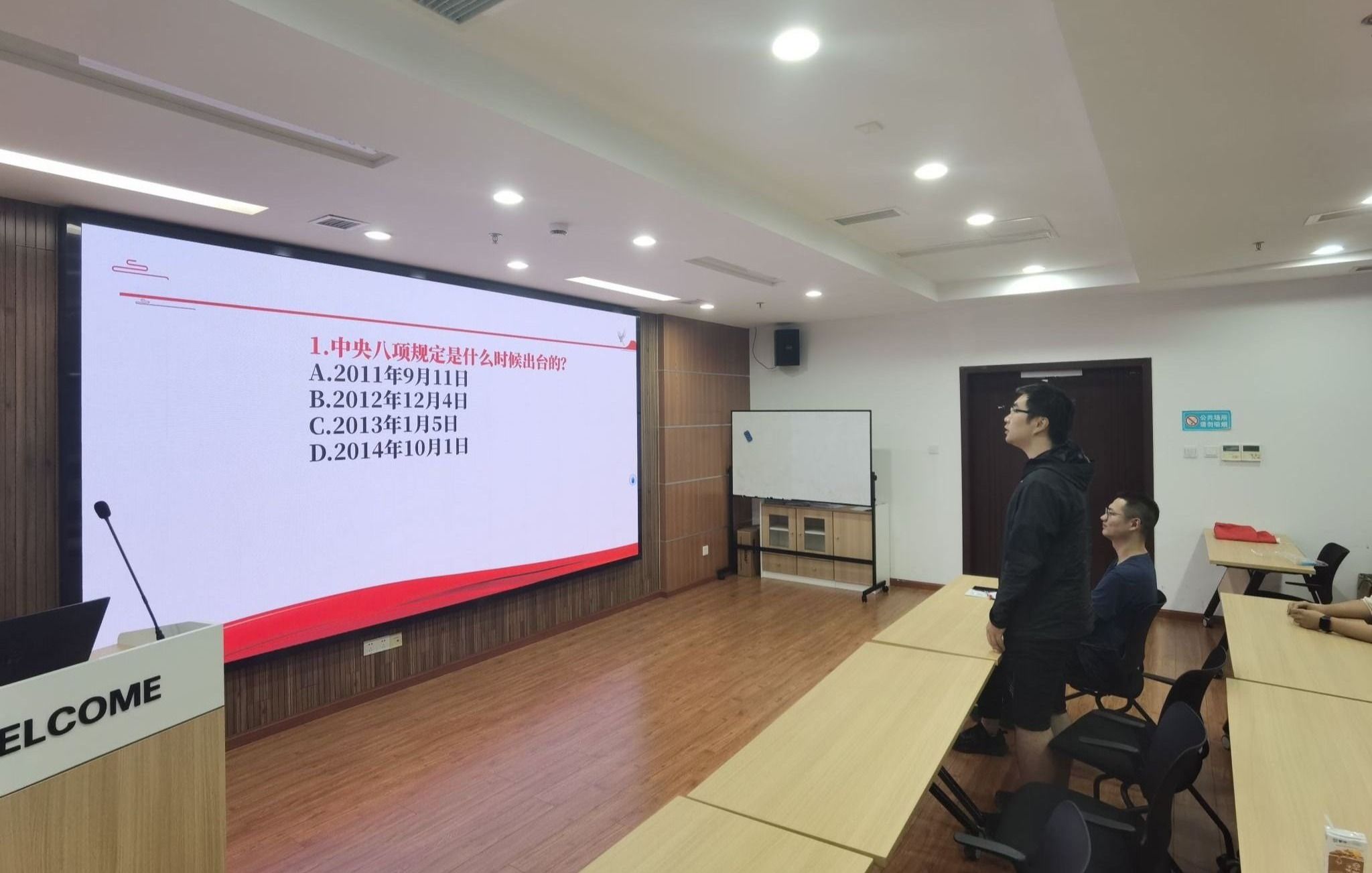 为检验学习成果,激发党员学习热情,党支部组织了中央八项规定精神知识竞赛。内容涵盖中央八项规定原文、实施细则、作风建设相关要求等知识点。让党员们在竞赛中加深了对中央八项规定精神的理解和记忆,达到了以赛促学、以学促行的目的。
