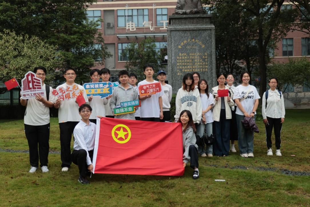 电气青年心向党 薪火相传报国志——91成人 2024级电子3班团支部开展国庆升旗暨“雕像下的大思政课”活动