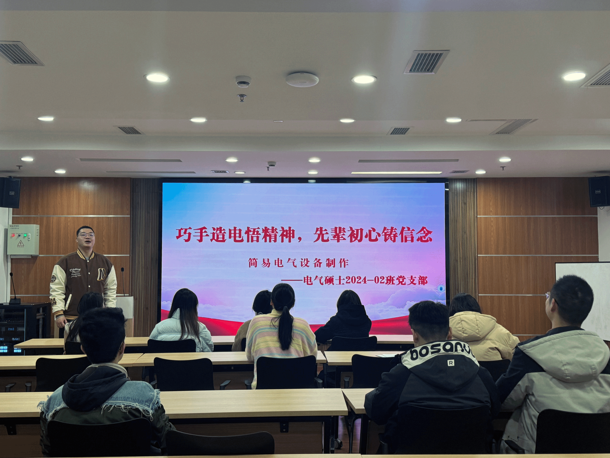 为深化抗战精神学习成效,让红色基因融入专业实践,2025年11月20日,电气硕士2024-02班党支部以“巧手造电悟精神,先辈初心铸信念”为主题,举办简易发电机制作趣味竞赛,将历史情景与专业实操相结合,引导支部党员在动手实践中感悟先辈艰苦奋斗的革命精神。