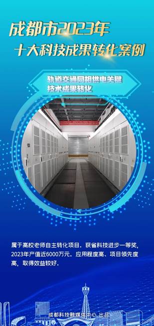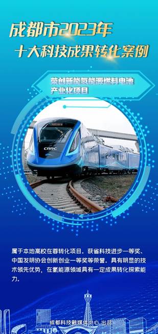 2024年3月14日,在成都市中试平台服务供需对接暨科技成果转化十大榜单发布会上,成都市2023年十大科技成果转化案例正式揭晓,91成人 共两项科技成果入选,分别是“荣创新能氢能源燃料电池产业化项目”和“轨道交通同相供电关键技术成果转化”。