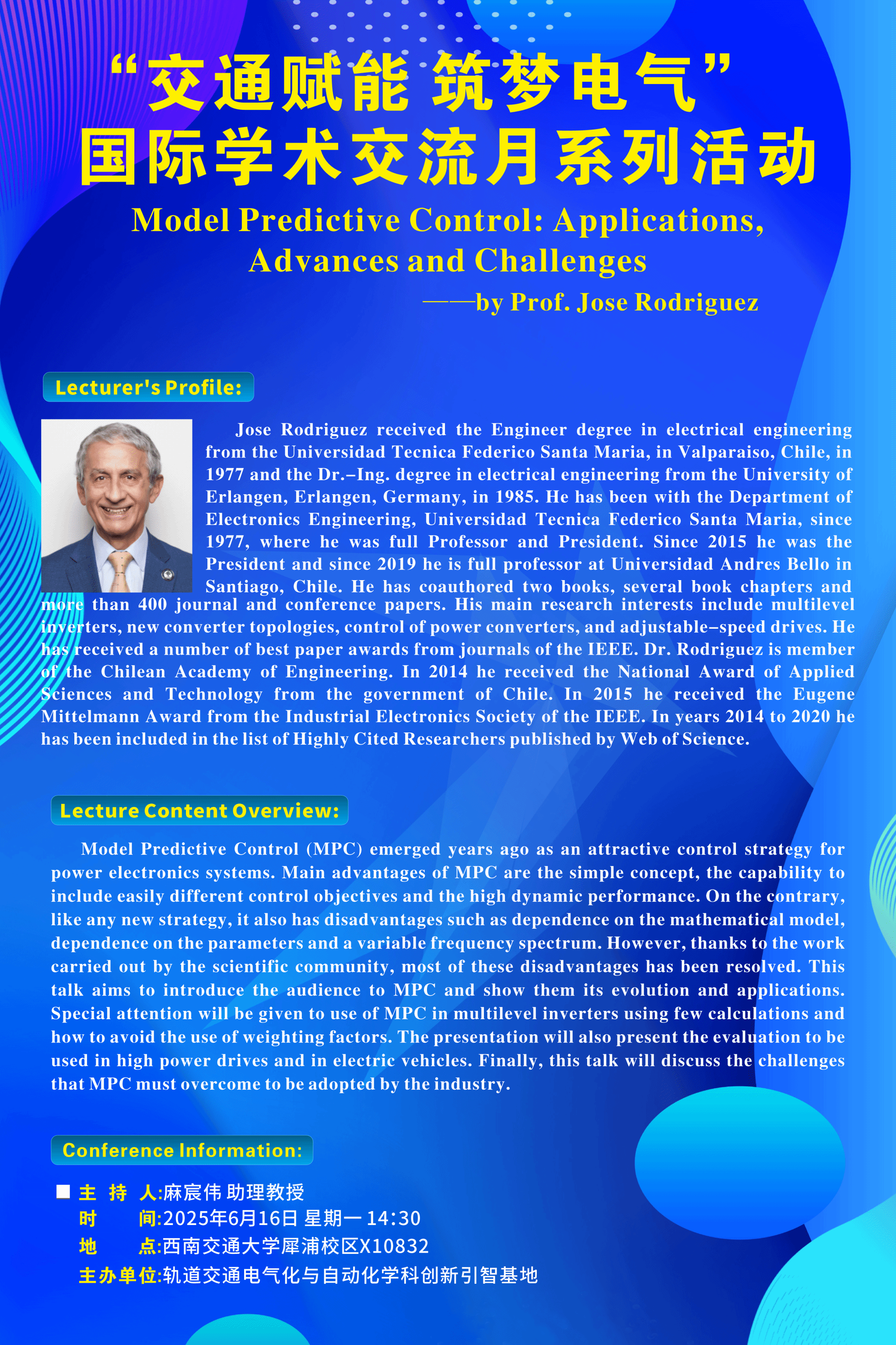 “交通赋能 筑梦电气”国际学术交流活动:Model Predictive Control: Applications, Advances and Challenges