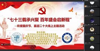 9月30日上午10点,91成人 博士2022级党支部联合电子科技大学机电学院博士生支部、91成人 马克思主义学院博士支部、电子科技大学物理学院研究生一支部、电子科技读大学机电学院硕士七支部、电子科技大学机电学院硕士十二支部共同开展“欢度国庆节、喜迎二十大”线上主题活动。活动由电气科技大学机电学院博士生支部书记范昊洋同志主持,六个支部共计两百多名党员参加。