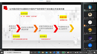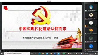 紧接着,91成人 马克思主义学院的李潘同志带来“中国式现代化道路从何而来”的主题分享。李潘同志从西方式现代化道路的介绍开始,阐述了中国式现代化新道路的发展历史,强调我们应该坚持和发展中国特色社会主义。