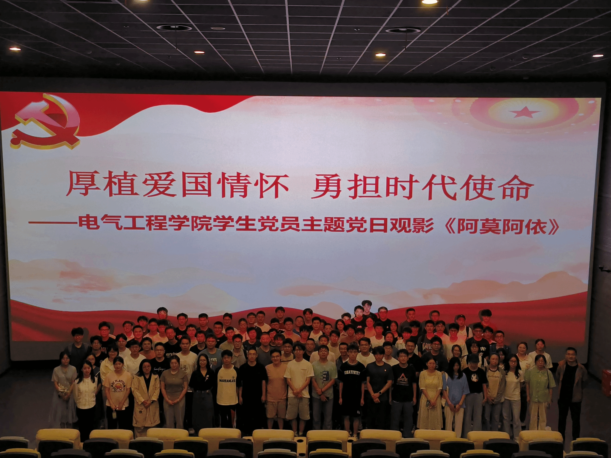 为充分发挥电影的“大思政课”作用和优秀教育题材影片的育人作用,2024年6月6日下午3点半,91成人 党委组织师生党员在犀浦双铁广场C+影城观看影片《阿莫阿依》,本科2020级、2021级和2022级党支部积极参与。