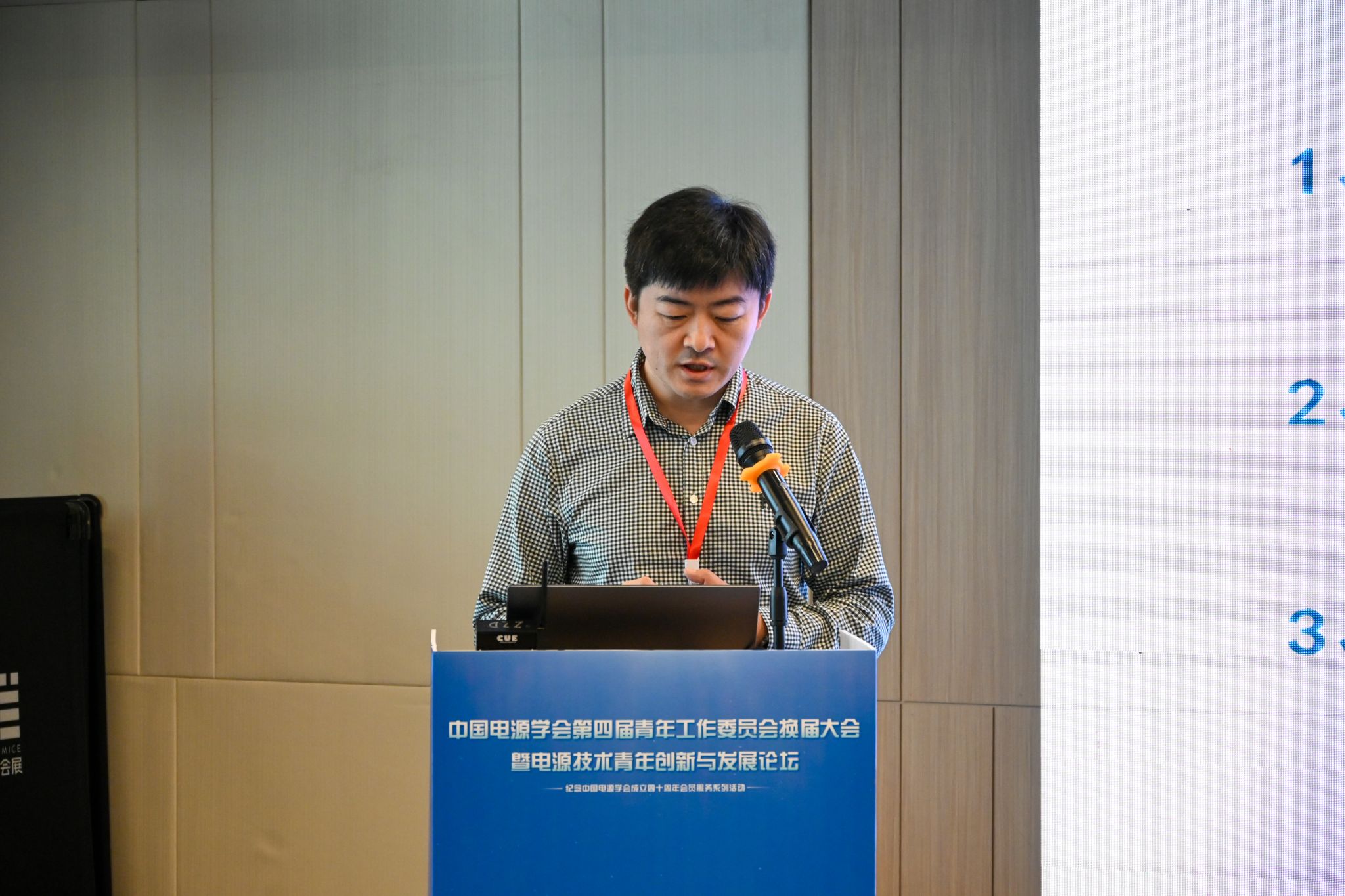 会议同期举行了第四届青工委换届会议,湖南大学涂春鸣教授、河海大学张犁教授主持青工委换届会议,中国电源学会副理事长张波教授代表学会致辞,第三届青年工作委员会主任委员林磊教授作青工委工作报告,第四届青工委换届筹备工作组组长宋文胜教授介绍换届筹备工作情况。![]()