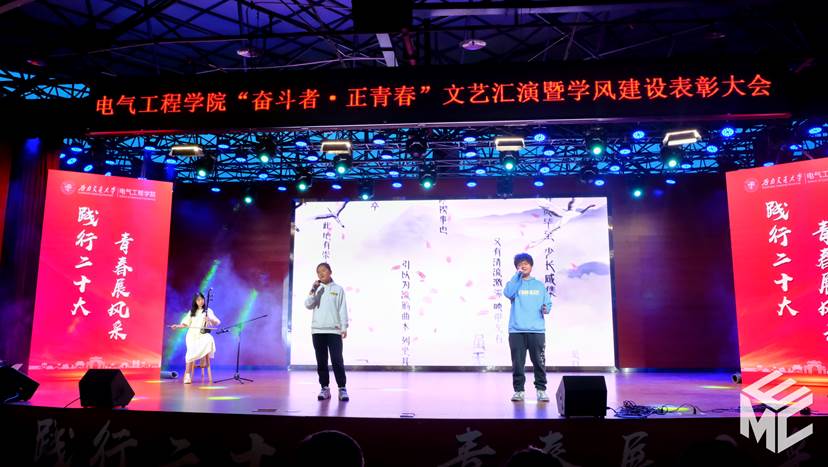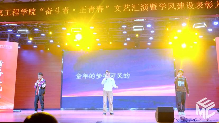 俱往矣,数风流人物,还看今朝。电气9班刘宇轩、戴麟沣、李昂朔为大家带来歌曲《妈妈的话》,儿时的梦想已不再,妈妈的话充斥梦想让我们不再彷徨。外出游学的我们,背负上梦想与希望,家人的嘱托与开拓的事业,让梦想不再缥缈,我们不再彷徨。