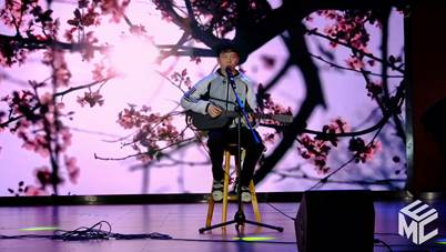 由电气4班安宇欣演唱的歌曲《花开忘忧》用轻松明快的语调,向我们展现了少年的肩头不只挑着奋斗向前,浩然正气,还挑着清风明月,杨柳依依和草长莺飞,引起了观众的强烈共鸣,带来许多感动。