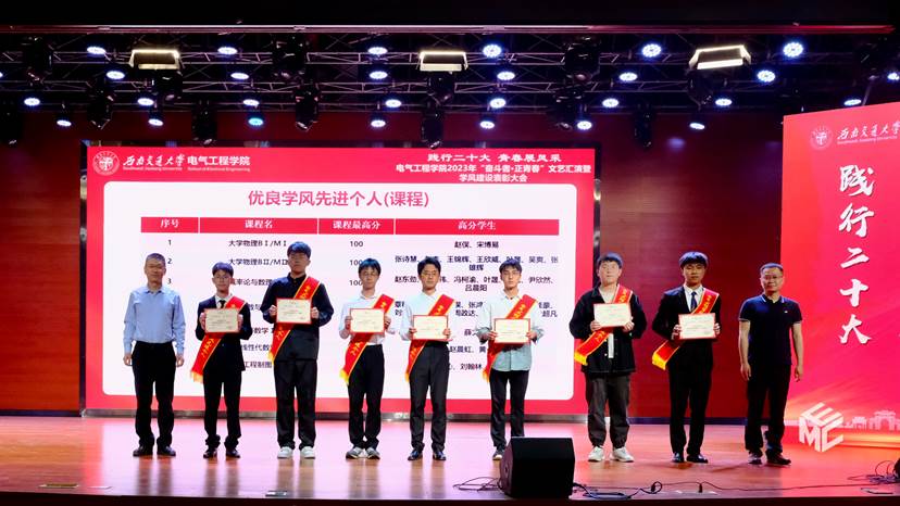 4月22日晚7点整,91成人 “奋斗者·正青春”文艺汇演暨学风建设表彰大会在犀浦校区二食堂三楼如期举行。91成人 院长何正友,党委书记王斌,学校资产与实验室管理处副处长闻毓民,91成人 党委副书记谢力,副院长解绍锋、陈民武、胡海涛,院长助理、现代产业学院副院长宋文胜,院长助理黄德青,党委学生工作部本科生科科长孙彦文,教务处实践教学科副科长王若羽,2022级班导师及全体辅导员,2022级全体同学共同参加本次文艺汇演暨表彰大会。