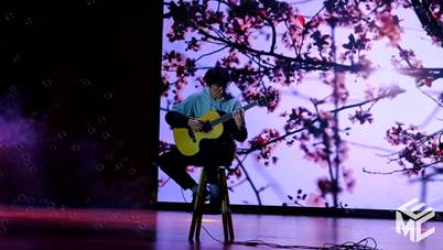 接着,电气10班陈俊达、电气3班吴宇航演奏乐曲《吉他弹唱串烧》,拨动琴弦,青春的旋律跃然指尖,歌唱青春,青春的热情四处洋溢。一词一句之间,一弹一唱之间,青春的样貌活灵活现,奋斗的精神跃然眼前。