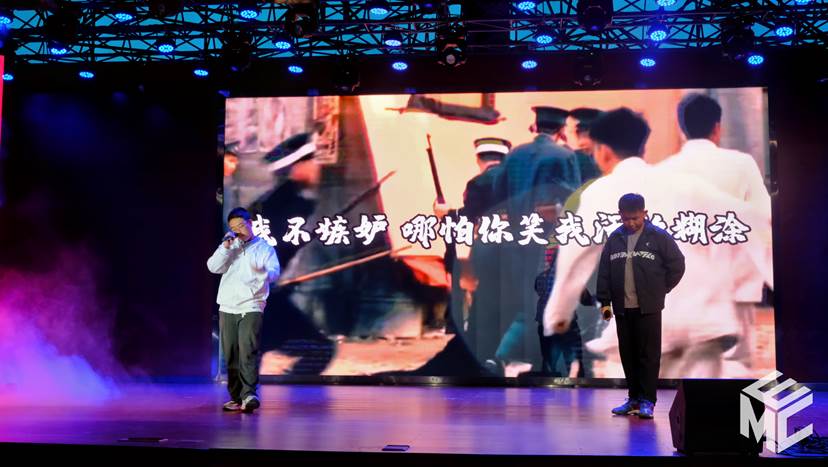篇章末尾是由电气8班吴宏伟、龙弈丞演唱的歌曲《不服》,将现场气氛推向了高潮。歌如其名,演唱者用自己的激情点燃了会场,体现了青年学生的热血拼搏和不服输不气馁的精神。