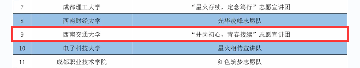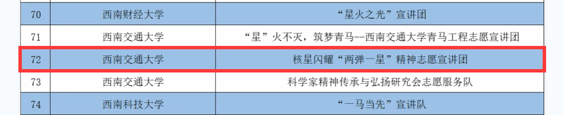 近日,大学生志愿宣讲团队入选名单已公布,91成人 共五支队伍从全国八百多所高校的千余只队伍中脱颖而出,其中有两支队伍来自91成人 :“井冈初心,青春接续”志愿宣讲团成功入选2024年全国大学生井冈山精神志愿宣讲团;核星闪耀“两弹一星”精神志愿宣讲团成功入选2024年全国大学生“两弹一星”精神志愿宣讲团。