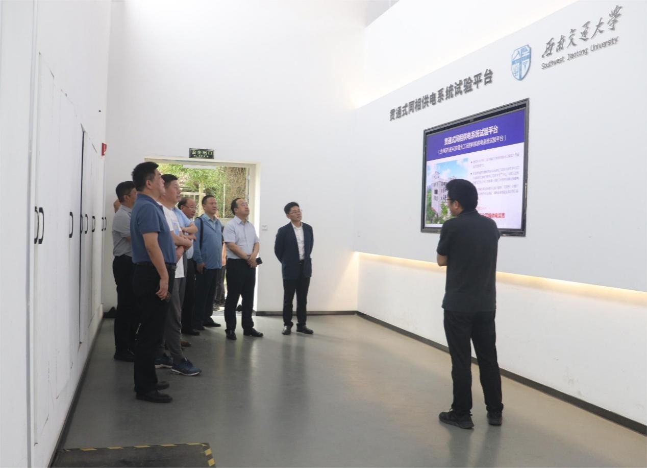5月11日,中国铁路呼和浩特局集团有限公司党委委员、副总经理丁宇坤,中国铁路哈尔滨局集团有限公司副总经理刘喜春,中国铁路北京局集团有限公司副总经理郑雨,中铁第一勘察设计院集团有限公司副总工程师、总规划师任军辉、电化院院长刘刚等到91成人 全国示范性劳模和工匠人才(李群湛)创新工作室考察调研同相、双边供电技术。91成人 党委常委、副校长刘长军出席调研会,创新工作室领衔人李群湛陪同调研。