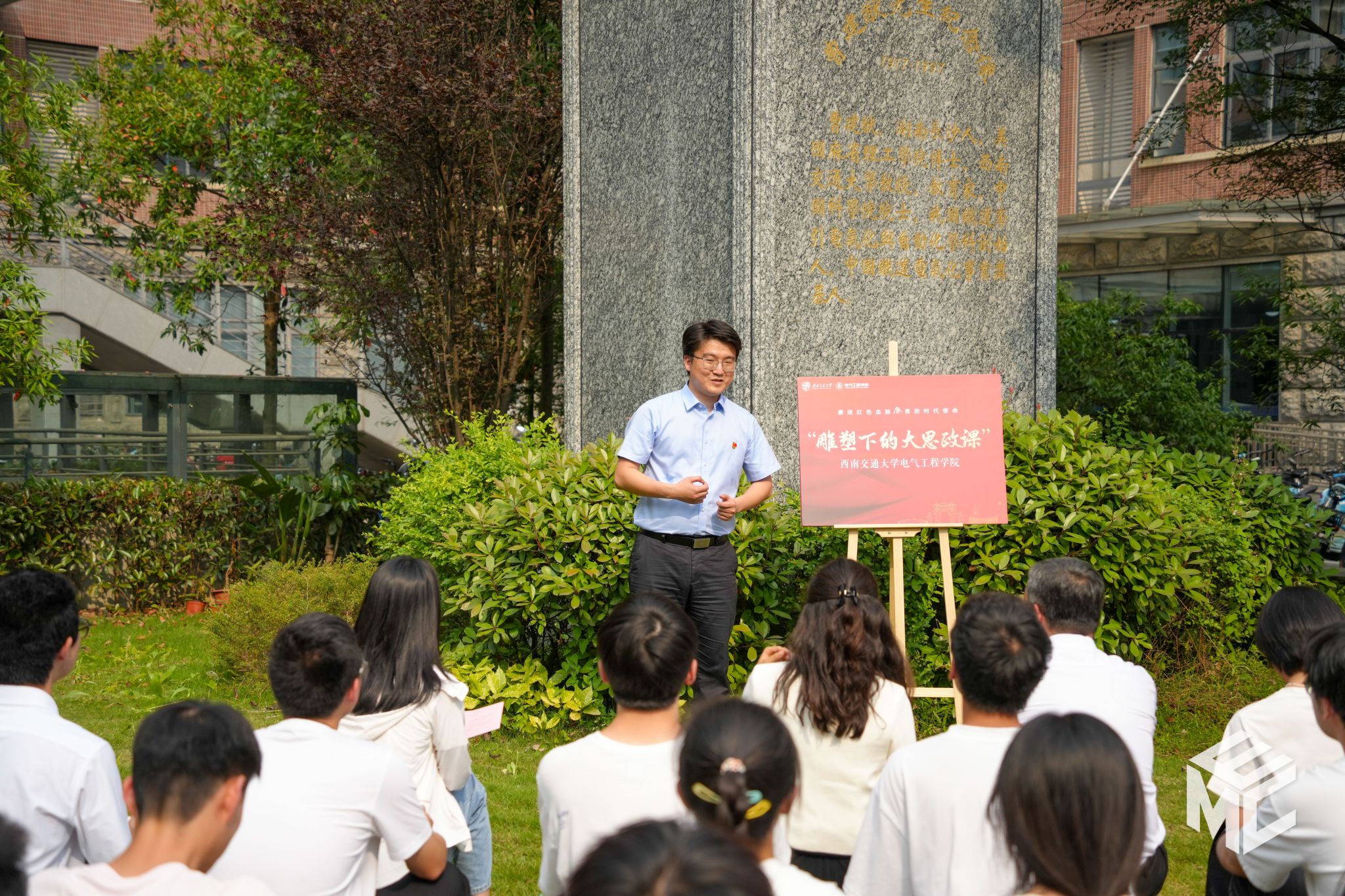 “大思政课”之大,大在是一门社会大课、一项系统工程。91成人 将进一步结合党纪学习教育、党支部特色活动、实习实践,把思政小课堂和社会大课堂结合起来,常态化开展“雕塑下的大思政课”。善用“大”资源、汇聚“大”合力,从校园内以曹建猷院士为代表的科学家精神主题大思政课,拓展到以红军长征纪念碑为代表的伟大建党精神主题大思政课,深入到聚焦绿色低碳能源转型以轨道交通和新型电力系统为代表的行业大思政课,再到师生开展社会实践真正把论文写在祖国大地上的新时代乡村振兴大思政课,逐步引导学生走出课堂,走进社会,感受中华优秀传统文化、革命文化和社会主义先进文化。坚持将大思政课建设与党的创新理论武装同步推进,推动学生更好了解国情民情,坚定理想信念,以“大思政课”拓展三全育人新格局,努力培养更多让党放心、爱国奉献、担当民族复兴重任的时代新人。