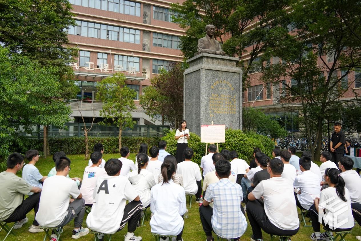 2024年5月16日下午,首期“雕塑下的大思政课”在91成人 犀浦校区电气馆楼前“曹建猷院士雕塑”下开展。91成人 党委书记王斌引用曹老原话“一切为了祖国,为了祖国建设”“其实平日想得最多的还是诸葛亮那句‘鞠躬尽瘁,死而后已’”,动情地讲述了曹老的三个故事: