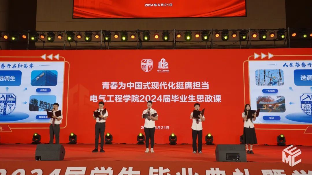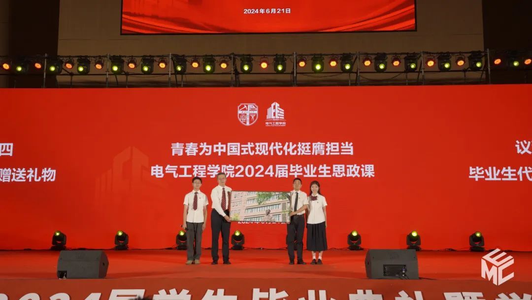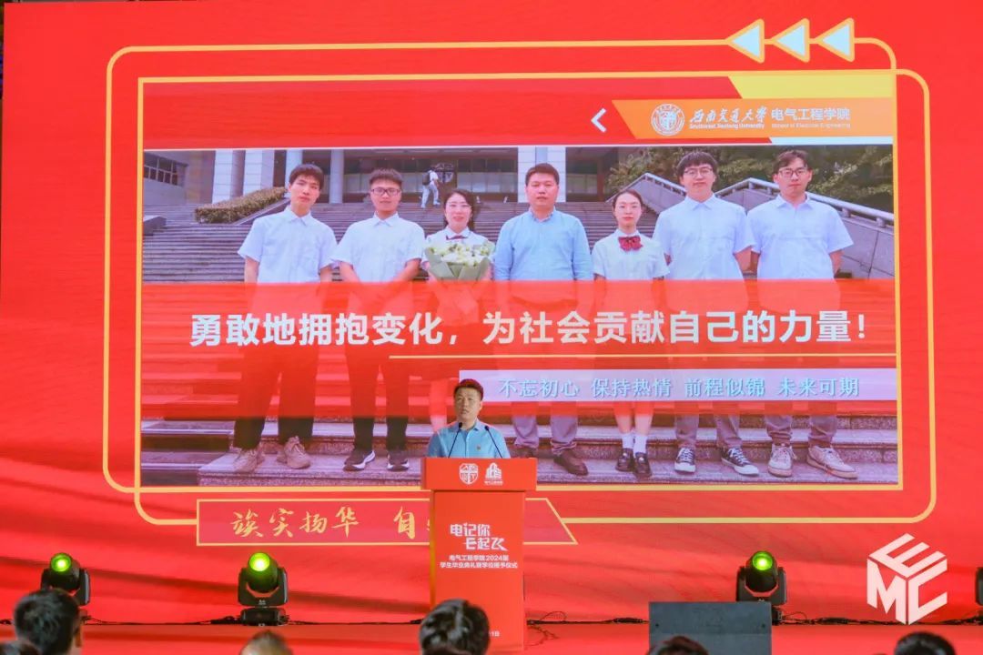 首先,教师代表2020级电气10班班导师李勇老师回顾四年来与同学们一起经历的坚持与获得的成就,总结了几年来电气学子的成长,并为全体毕业生送上寄语。在面对挑战时勇敢拥抱变化,用知识和能力为社会贡献自己的力量。母校的大门永远向交大学子们展开,不论何时,母校永远欢迎学子们回来。