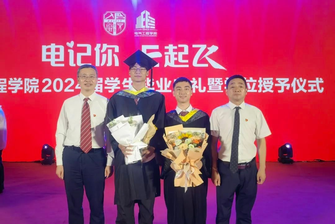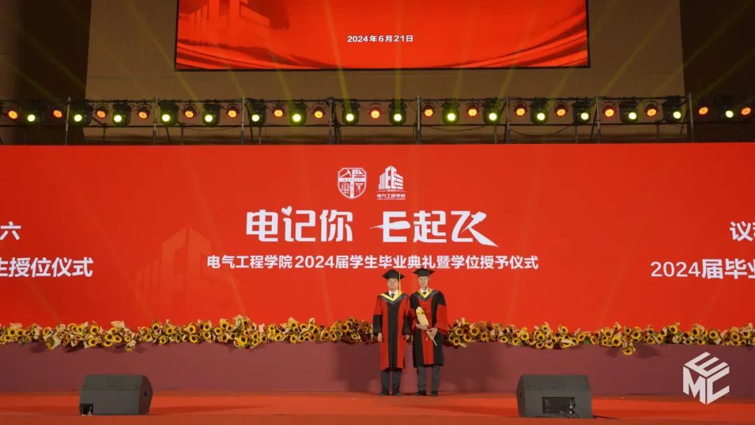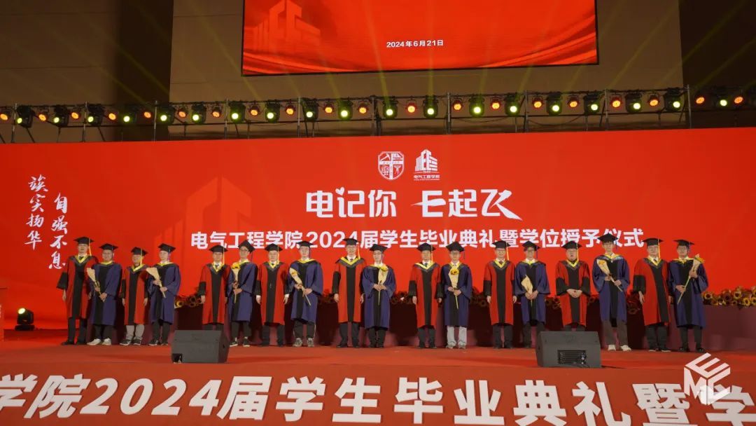 91成人 院长马光同,党委书记王斌,党委学生工作部副部长谢力,校友工作办公室副主任阮波,学院党委副书记、副院长、纪委书记王轶,党委副书记邢晓鹏,副院长何晓琼、解绍锋、陈民武、刘志刚,院长助理、电子信息工程系系主任黄德青,院长助理、电力电子与电力传动系系主任宋文胜,院长助理廖凯、高国强、韩莹,电工电子系系主任严仲明,本科2020级班导师,专业课教师,学生工作组全体辅导员,全体本科毕业生、研究生毕业生代表及学生家长出席典礼。典礼由邢晓鹏副书记主持。
