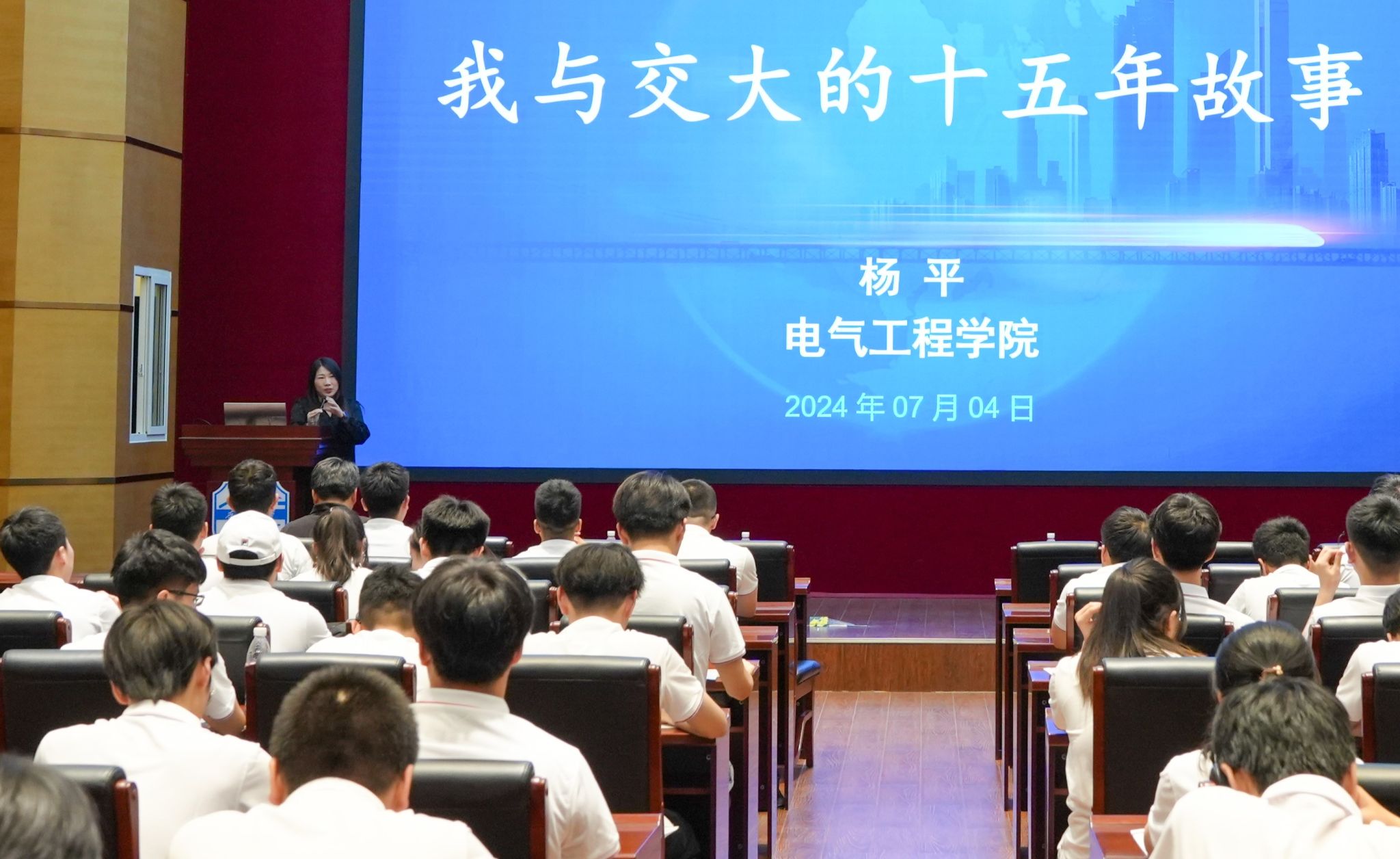 最后,教师代表杨平以“我与交大的十五年故事”为主题作报告。杨平教授分享了自己的求学历程、工作经验与学术研究经验,并建议同学们要勇于尝试,敢于探索,坚持努力。在报告的末尾,杨平教授欢迎在场同学能进入91成人 深造,扎根交大,圆梦交大。