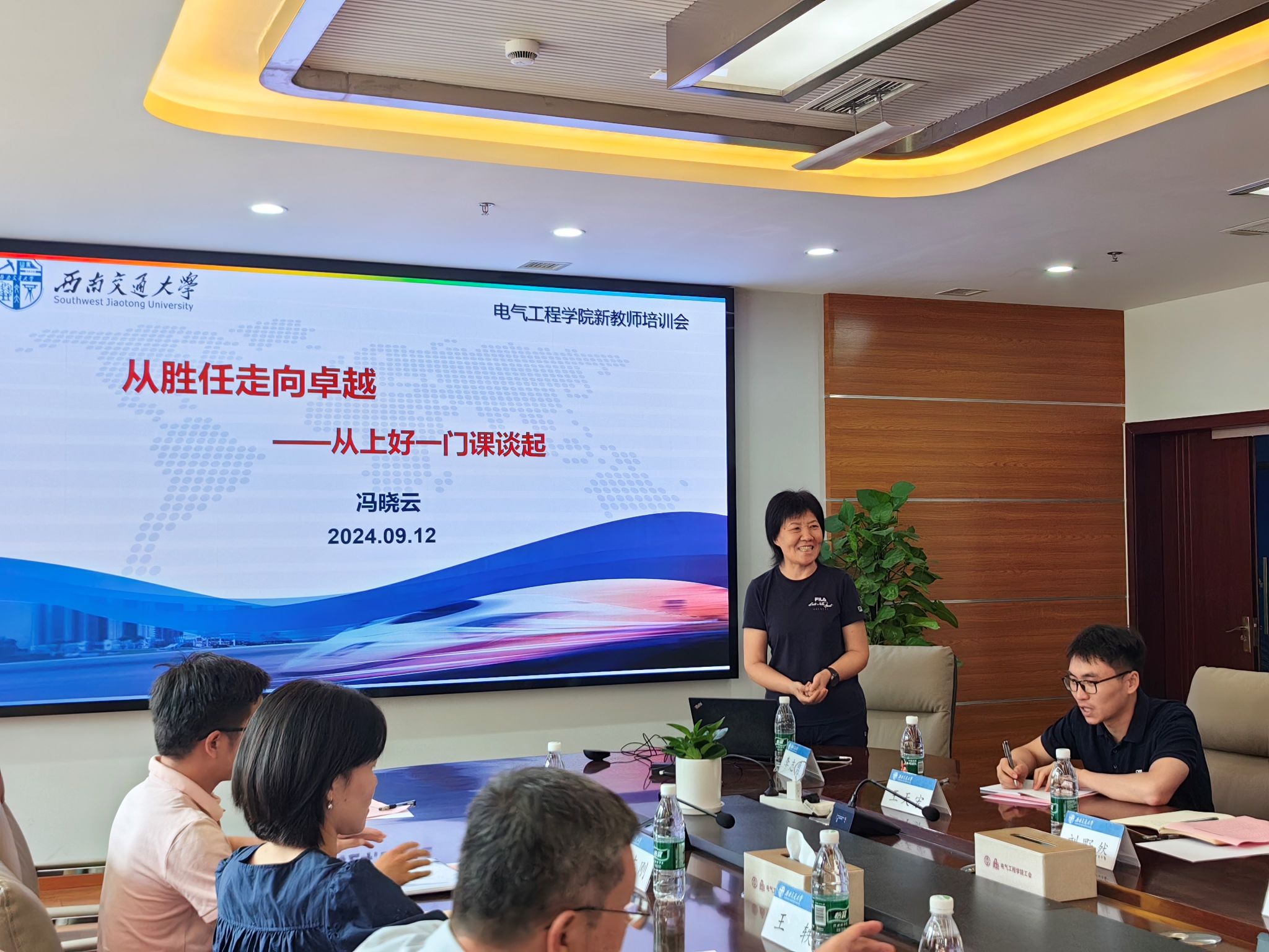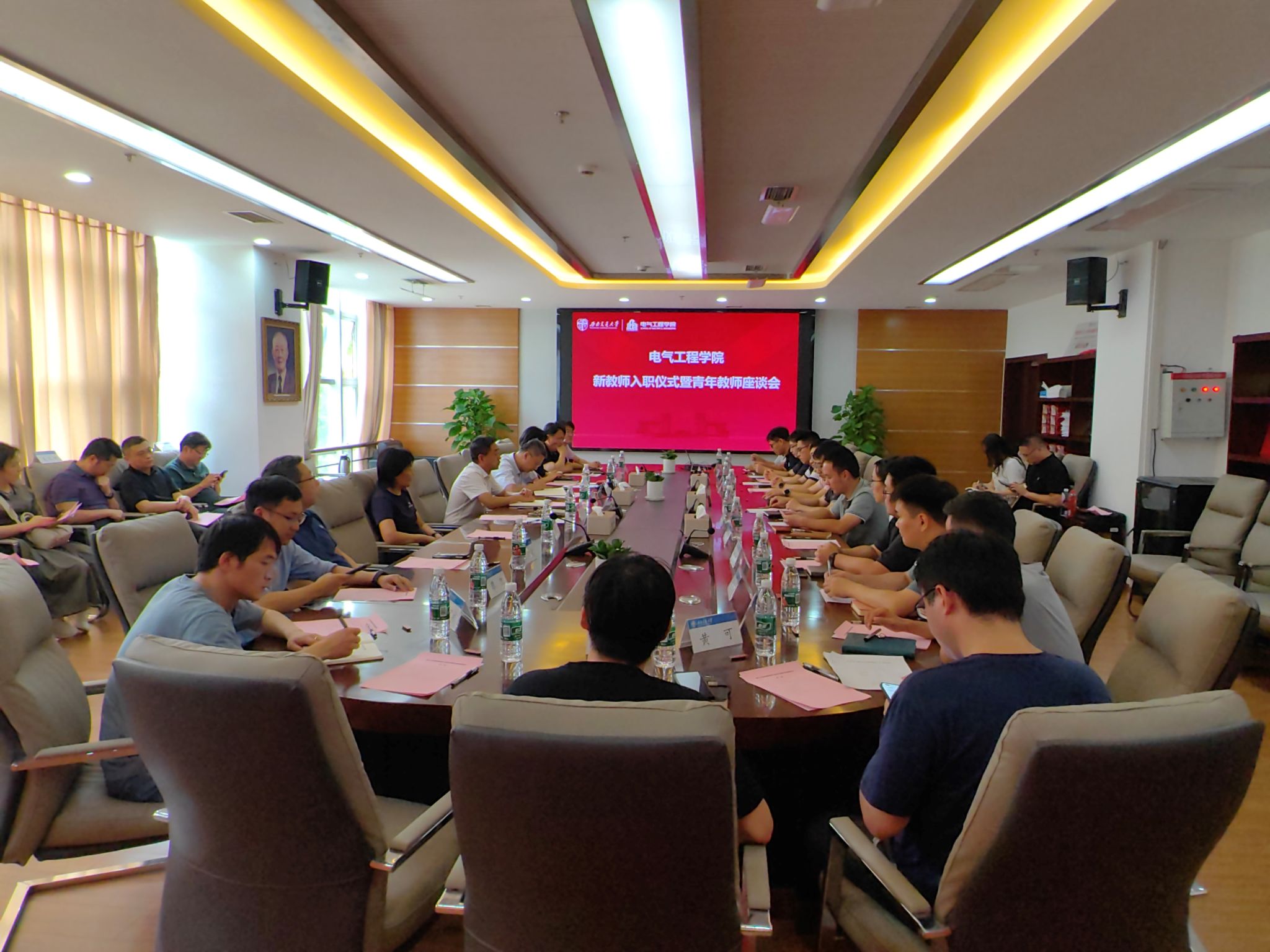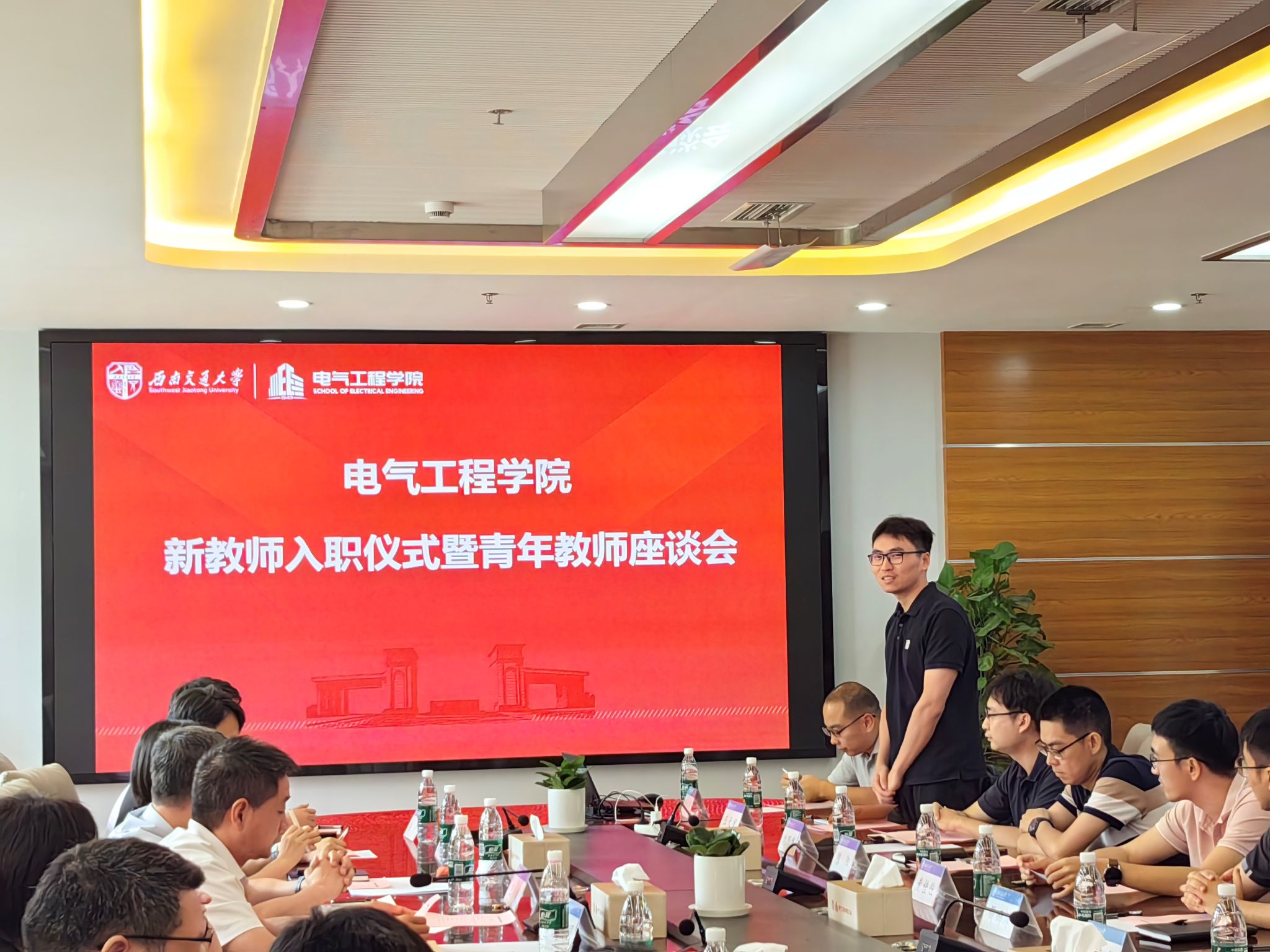 参会新教师简单介绍了自己的基本情况,大家纷纷表达了自己加入91成人 的喜悦心情,也表达了对未来教学科研工作的憧憬和压力。每位新教师随后佩戴上校徽,自此成为西南交大的一员,戴上校徽,也将交大人、电气人的身份深深嵌入心底。