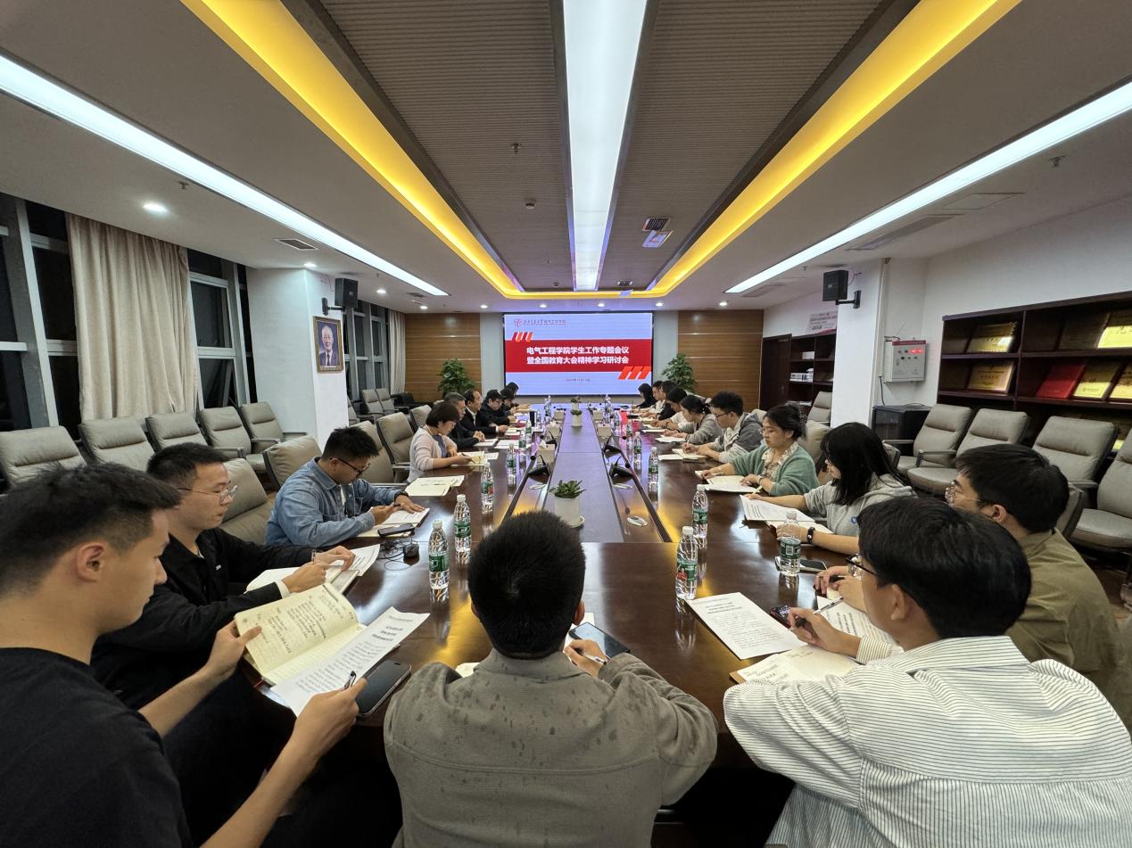 为深入学习贯彻习近平总书记重要讲话和全国教育大会精神,进一步凝聚思想共识、强化使命担当,2024年10月16日晚19时,91成人 学生工作组在电气馆X10212开展学生工作专题会议暨全国教育大会精神学习研讨会,学院党委书记王斌、学院党委副书记邢晓鹏、学院学生工作组全体辅导员共同参会。本次会议由学院党委副书记邢晓鹏主持。