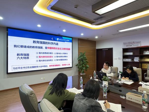 首先,邢晓鹏副书记领学了习近平总书记在全国教育大会上的重要讲话精神。此次全国教育大会是在新时代新征程加快建设教育强国阶段召开的一次重要会议,在我国教育发展史上具有十分重要的里程碑意义。习近平总书记在全国教育大会上的重要讲话,站在党和国家事业发展全局的战略高度,全面总结新时代教育事业取得的历史性成就、发生的格局性变化,系统阐释教育强国的科学内涵和基本路径,深刻阐述教育强国建设要正确处理好的重大关系,系统部署全面推进教育强国建设的战略任务和重大举措,体现了习近平总书记对教育事业的高度重视和对强国建设规律的深刻洞察与精准把握,具有很强的政治性、思想性、指导性,是指导新时代新征程教育工作的纲领性文献,为建设教育强国指明了前进方向、提供了根本遵循。