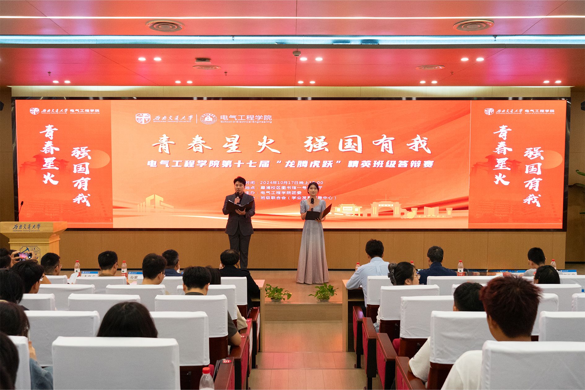 2024年10月17日晚上19时,由91成人 团委主办,91成人 班级联合会(学业发展指导中心)承办的91成人 第十七届“龙腾虎跃”精英班级答辩赛于犀浦校区图书馆一号报告厅正式拉开序幕。学院党委副书记邢晓鹏、教学工作主管韩莹、团委书记张异、入围班级班导师以及各年级辅导员共同出席本次精英班级答辩赛。此外,学院本科2024级全体新生班委也来到答辩现场,向参加答辩赛的13个优秀班级学习经验。