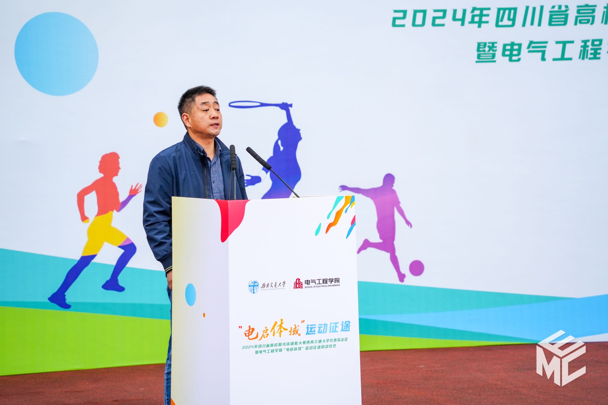 2024年11月11日上午8时30分,91成人 参加2024年四川省高校阳光体适能大赛出征仪式暨91成人 “电启体域”运动征途启动仪式在犀浦校区北区体育场举办。校党委副书记高平平,体育学院院长、奥运裁判刘江,党委学生工作部部长张军琪,91成人 院长马光同,党委书记王斌,校团委副书记李娜,学院党委副书记邢晓鹏,全体辅导员老师与91成人 近1000名师生共同参加。本次仪式由邢晓鹏副书记主持。