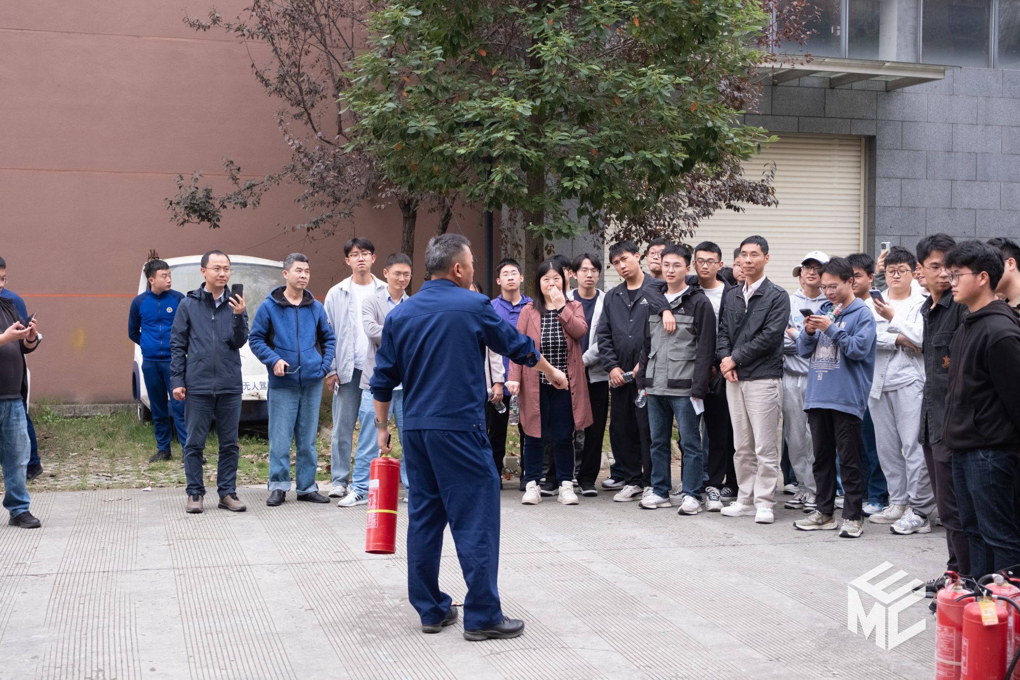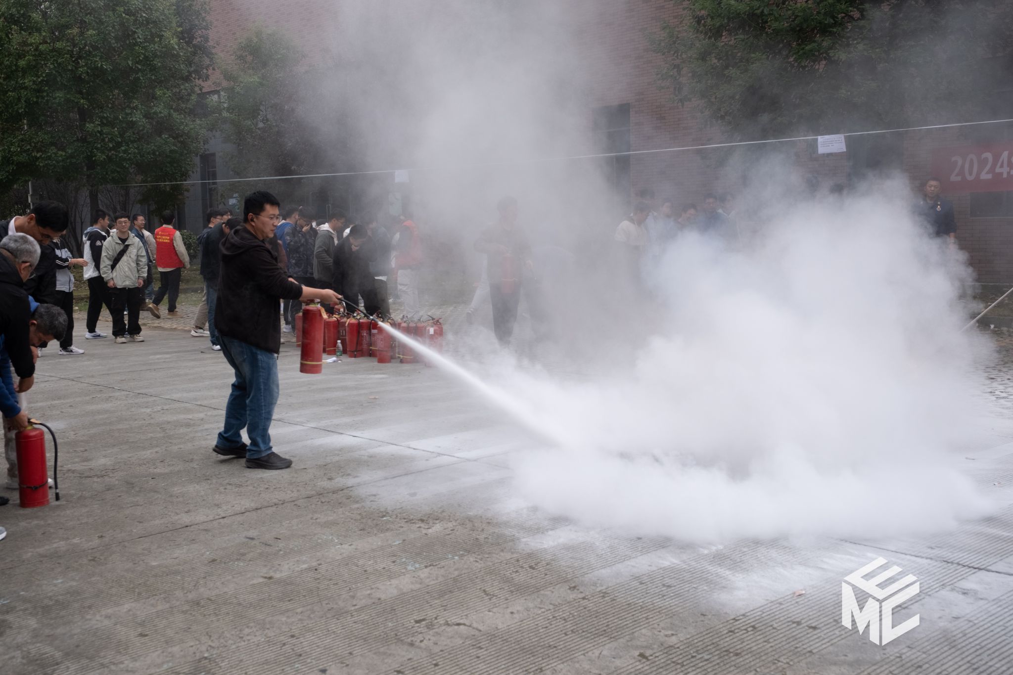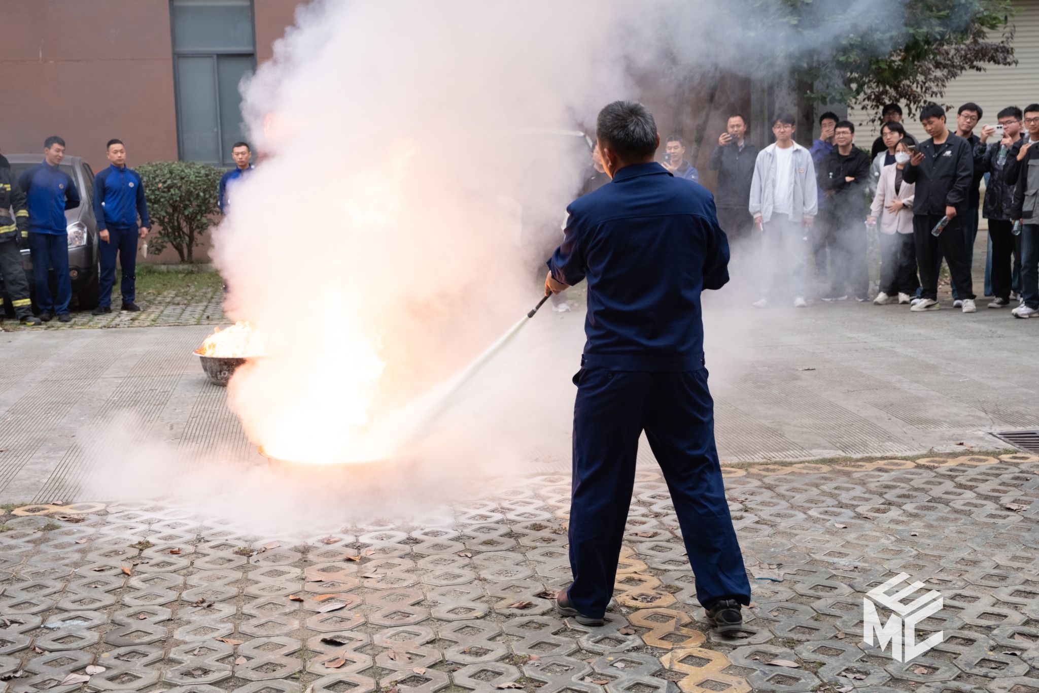 邢忠琳指导员展示了灭火器的使用方法,在犀浦中队教官和学校保卫处老师的组织下,同学们踊跃参与,按照灭火器正确的操作方法,实操演练火灾扑救。