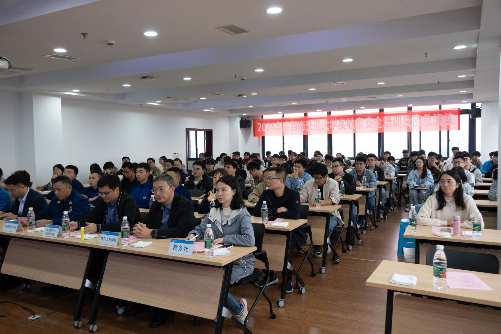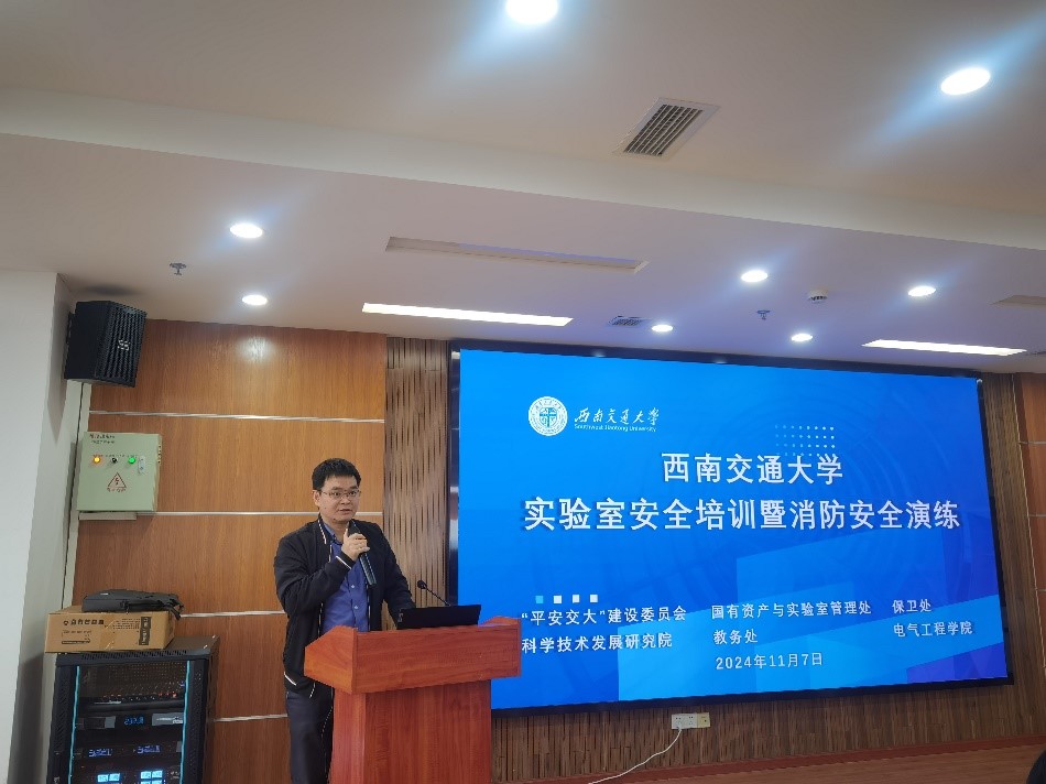 在第33个全国消防日来临之际,为进一步增强师生的实验室安全意识和应急处置能力,构建平安校园,11月7日下午,由校长办公室、国有资产与实验室管理处、保卫处、科学技术发展研究院、教务处联合主办,91成人 承办的实验室安全培训暨应急演练活动在犀浦校区电气馆举行。