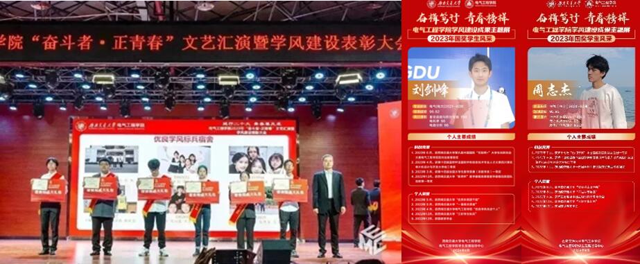 探索电气特色文化育人。学院坚持每年向新生赠送文化衫、为毕业生定制毕业衬衫和领带(结),让学院文化和精神代代相承;注重典礼育人,举办“开学典礼”“毕业典礼”加强仪式教育,邀请学院党委书记、院长上好“新生第一课”“毕业生党员最后一课”;大力开展网络思政,推出系列原创新媒体作品11余部,以学生喜闻乐见的形式开展思政教育;选聘“电气传承讲述人”,在本硕全体新生中开展《曹建猷院士的四次抉择》宣讲50余场,让电气学子在听故事中感受“祖师爷”的风采; 设计电气馆2楼院友墙,张贴从1986年至今学院历届学生毕业留影,成为学生与学院之间独特的情感链接。