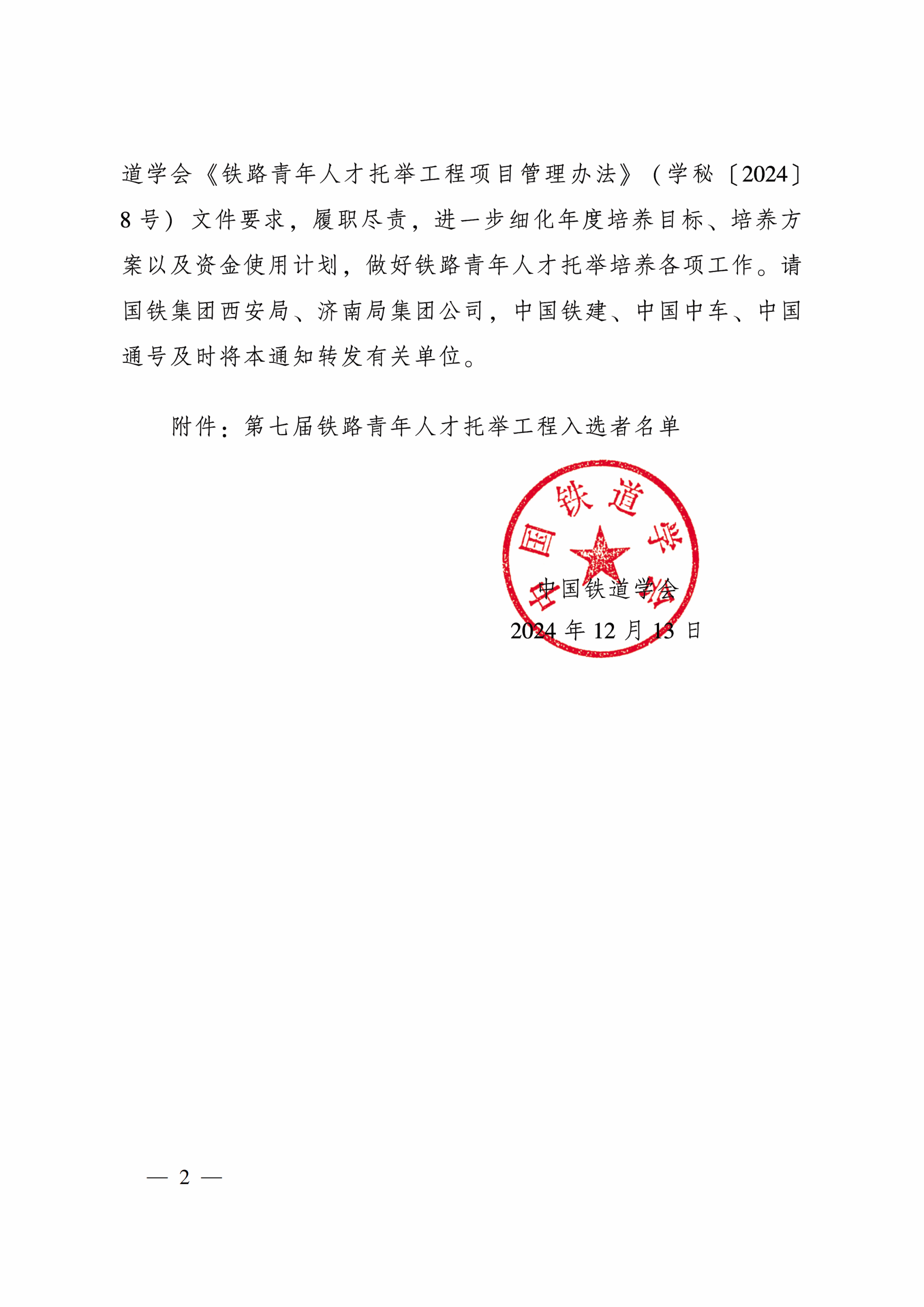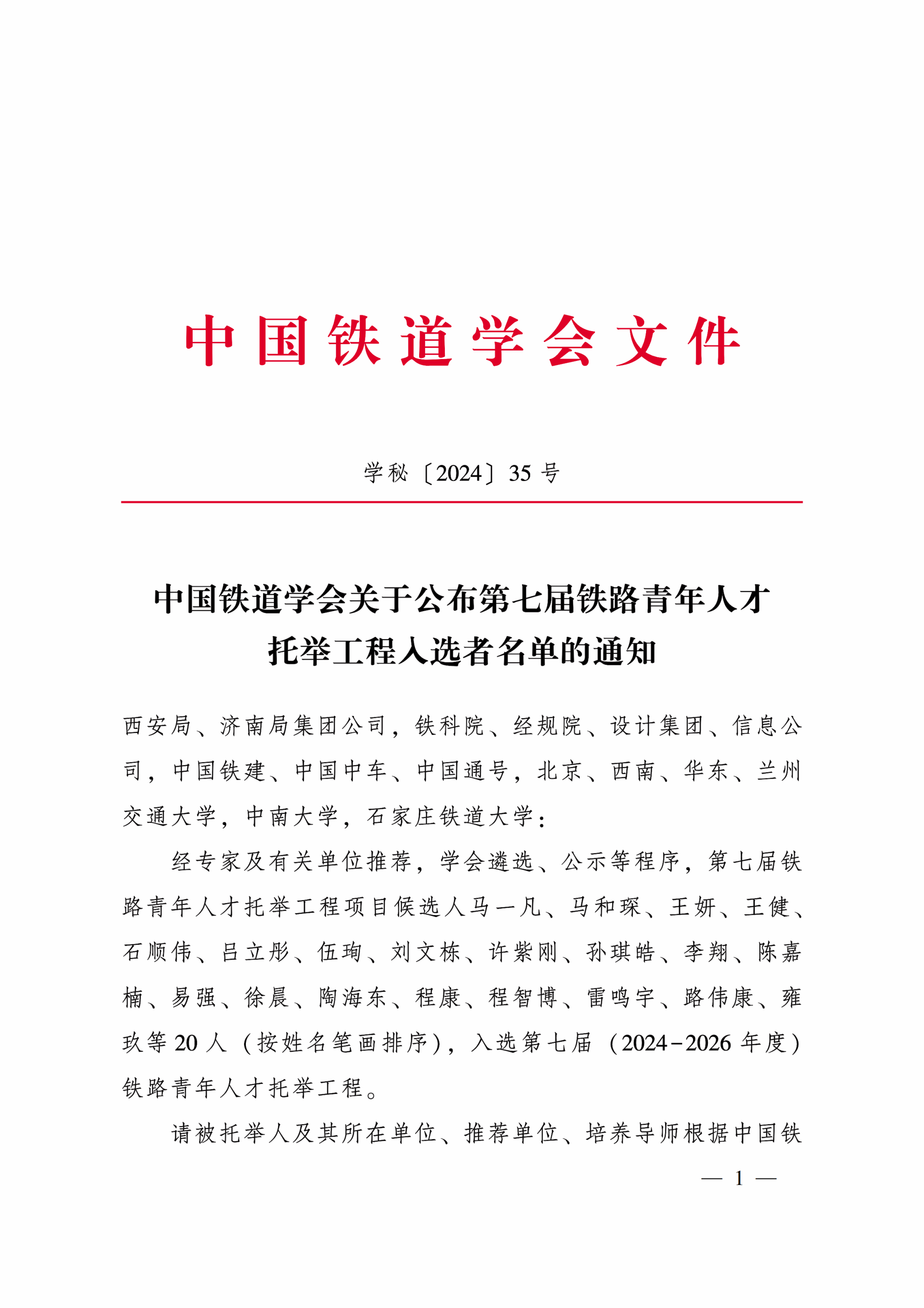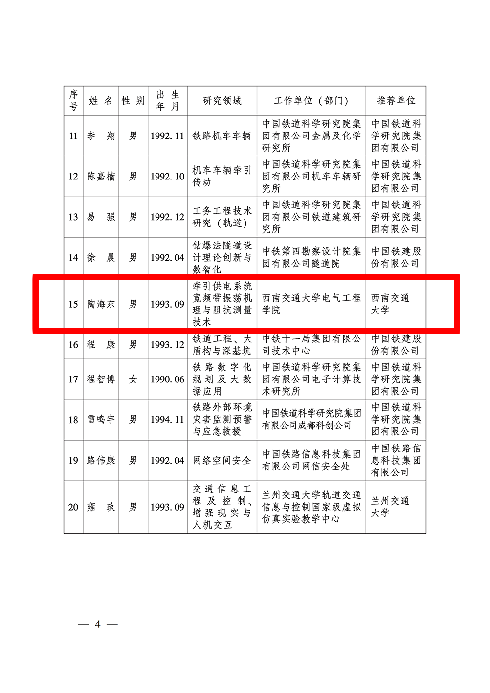 学院陶海东副研究员入选第七届铁路青年人才托举工程项目