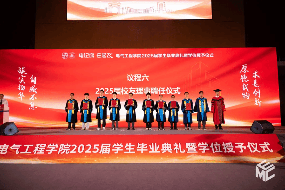 马光同院长以“无界为界,日新又新”为题发表讲话。他回顾了同学们在校期间的成长与奋斗,肯定了他们即将奔赴不同领域贡献青春力量的选择。面对新时代的技术变革与发展机遇,马光同院长提出三点殷切期望:一是要兼容并蓄,开拓“风物长宜放眼量”的胸怀眼界;二是要敢为人先,突破“与时偕行日维新”的创新边界;三是要心怀大我,修炼“不为繁华易素心”的人生境界。毕业生们要将个人理想追求深度融入党和人民的伟大事业之中,牢记交大精神和电气精神,保持“日日求新”的进取姿态,在全面建设社会主义现代化国家的火热实践中绽放绚丽之花。